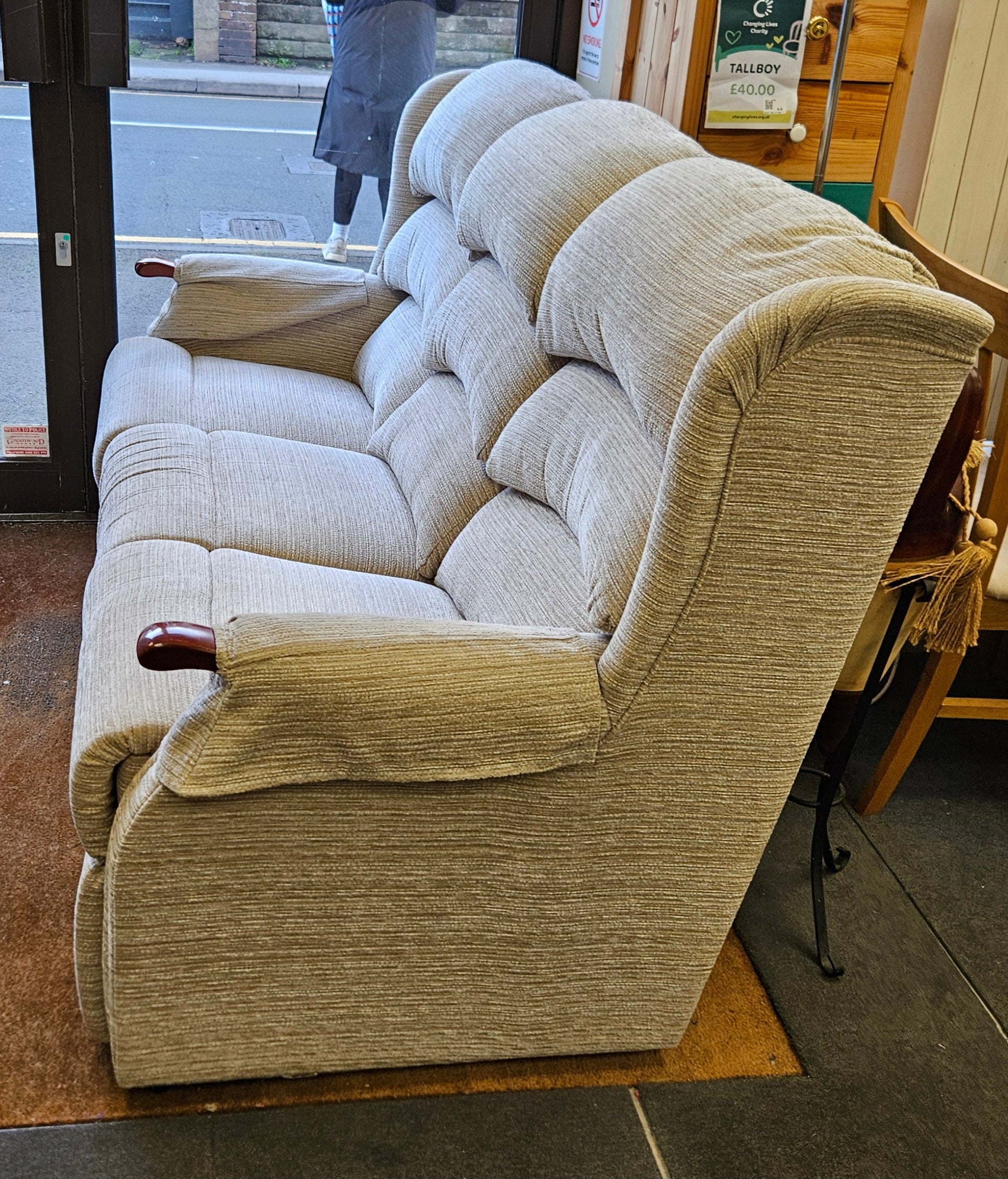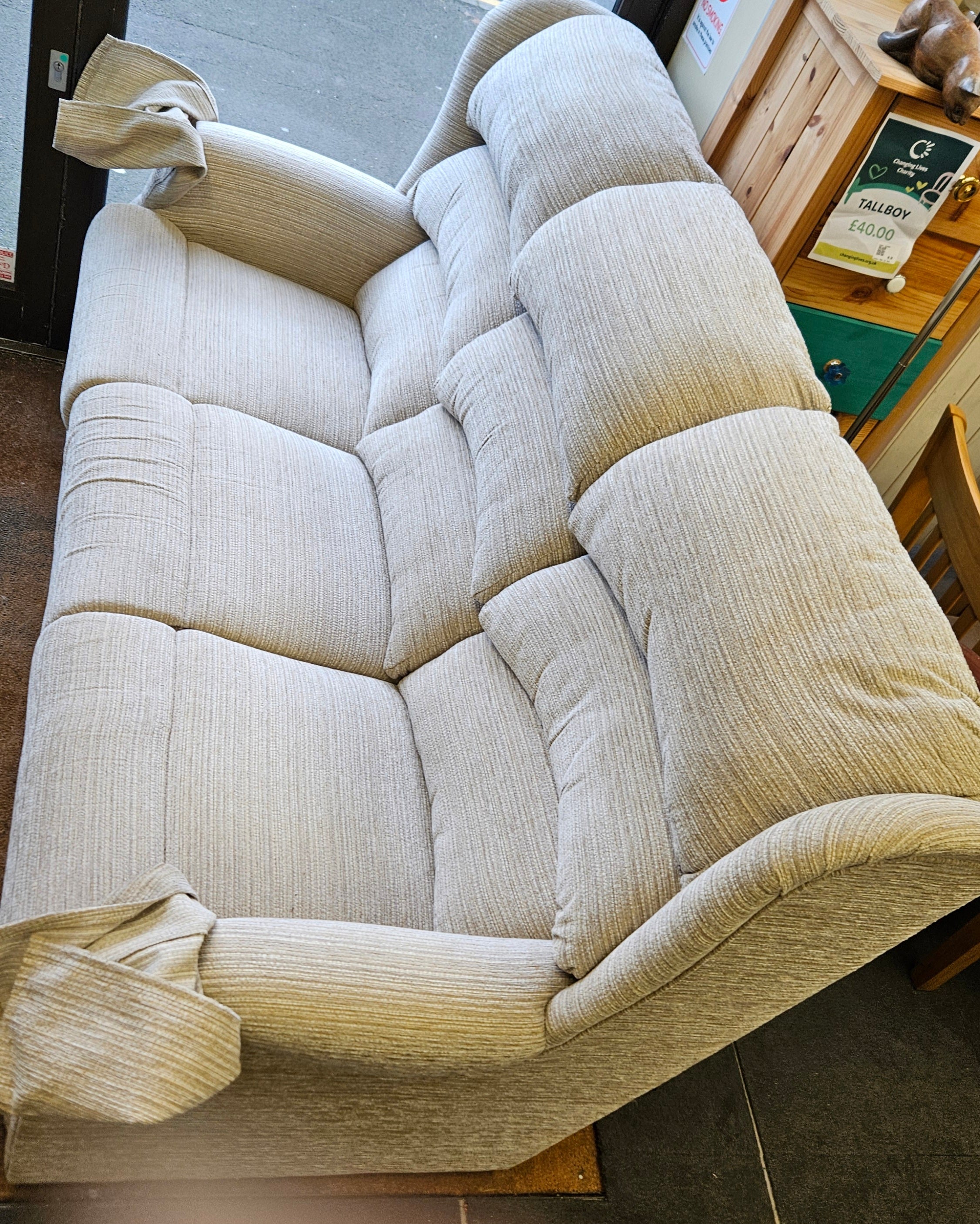 This oatmeal-coloured 3-seat sofa combines functionality with aesthetic appeal. Its neutral hue complements various interior styles, making it versatile for different spaces. Designed for comfort, it provides ample seating for three individuals, supporting daily relaxation and social interactions effectively.