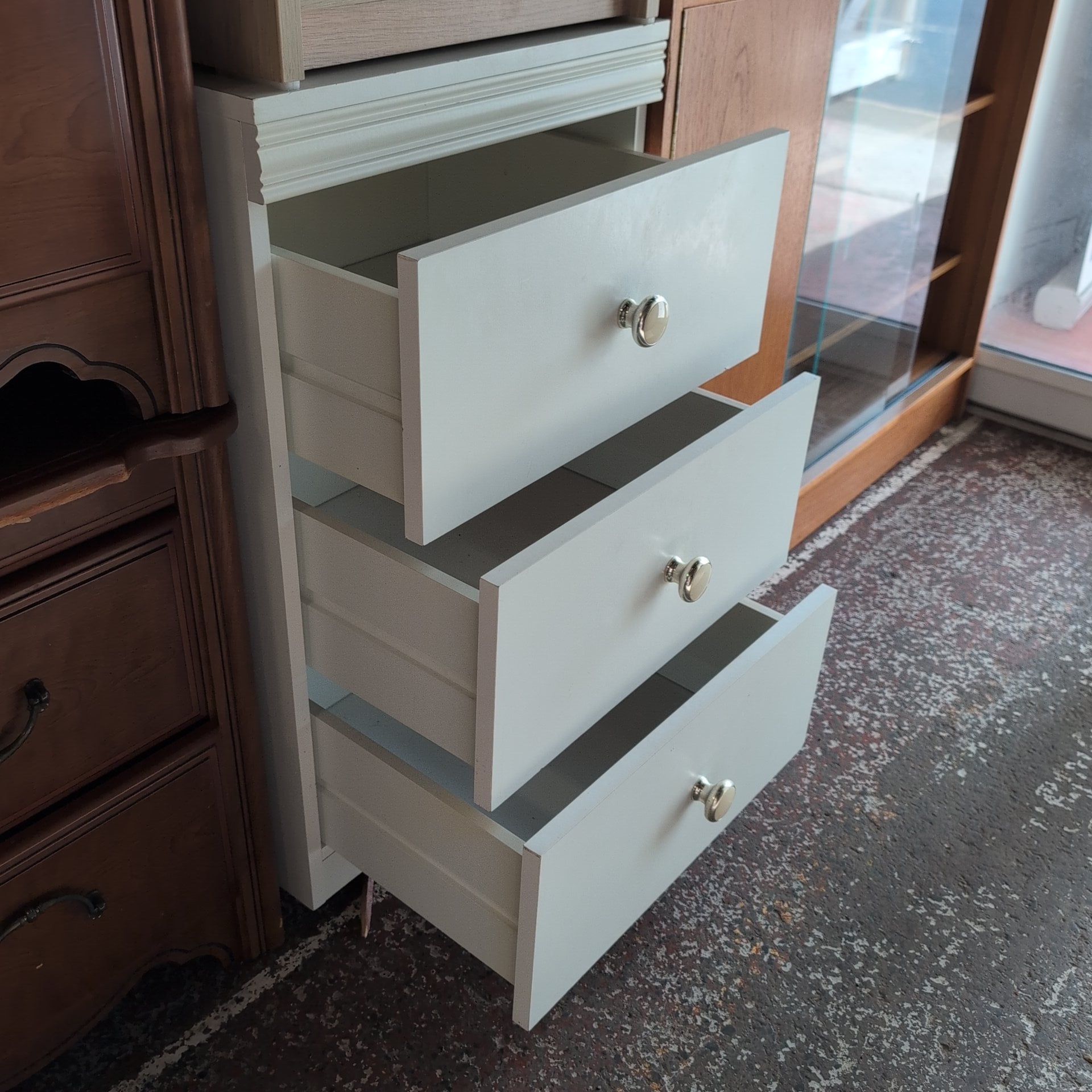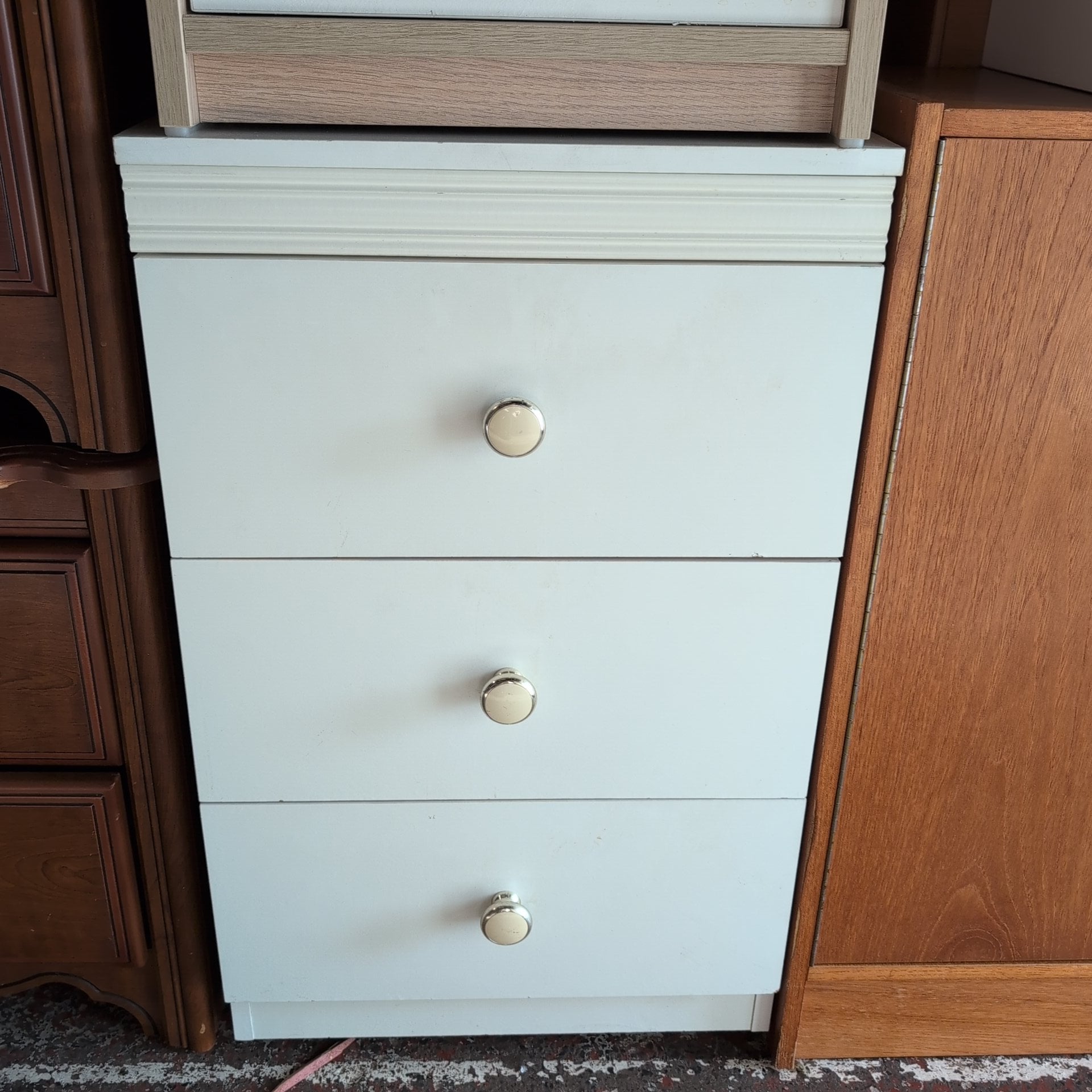 Transform your bedroom into an organised sanctuary with this stunning white bedside cabinet. Three generously sized drawers keep your nighttime essentials within arm's reach—from books and glasses to personal items—all neatly concealed and out of sight. The sophisticated wood effect detailing adds warmth and character to your space, whilst the crisp white finish ensures it works beautifully with any décor scheme. Quality construction means years of reliable performance. Discover how smart storage can elevate your bedroom experience and help you start each day clutter-free.