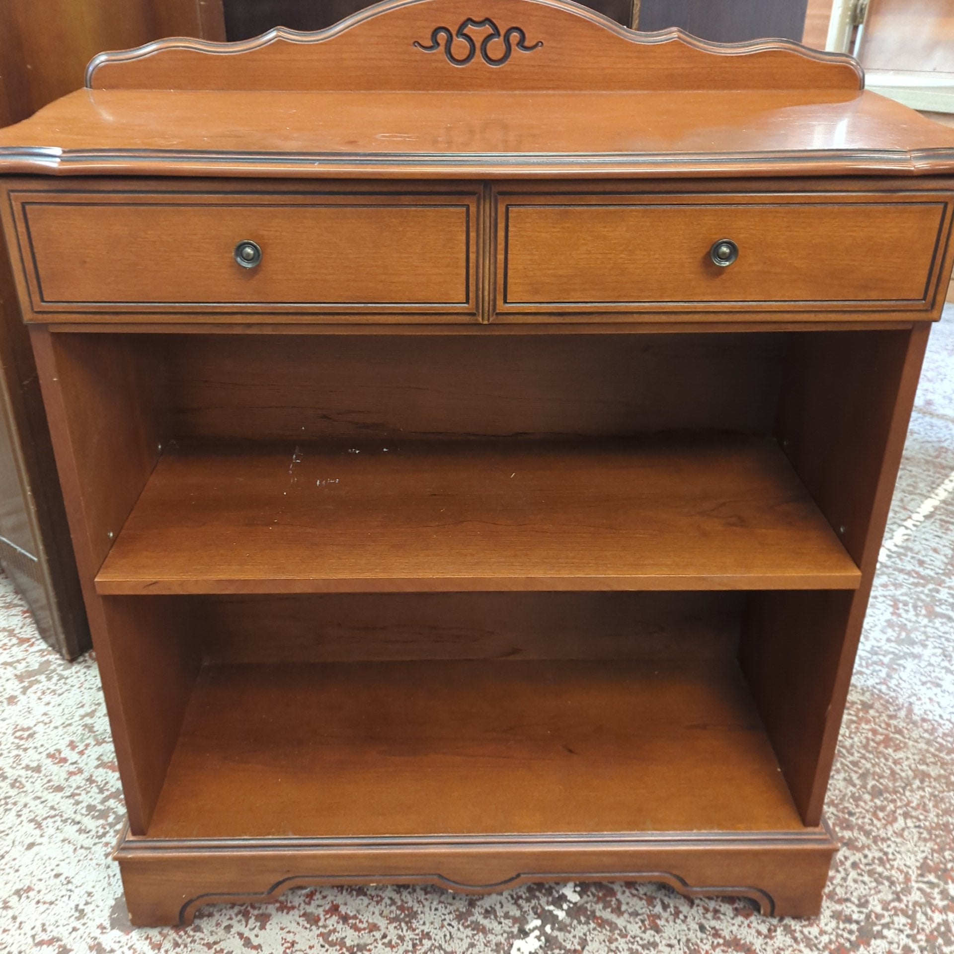 This bookcase, in fairly good condition, provides sturdy storage for books and decorative items. Its design allows for efficient organization, facilitating easy access to your collection. Ideal for both home and office environments, it enhances space utilization while contributing to an orderly aesthetic.