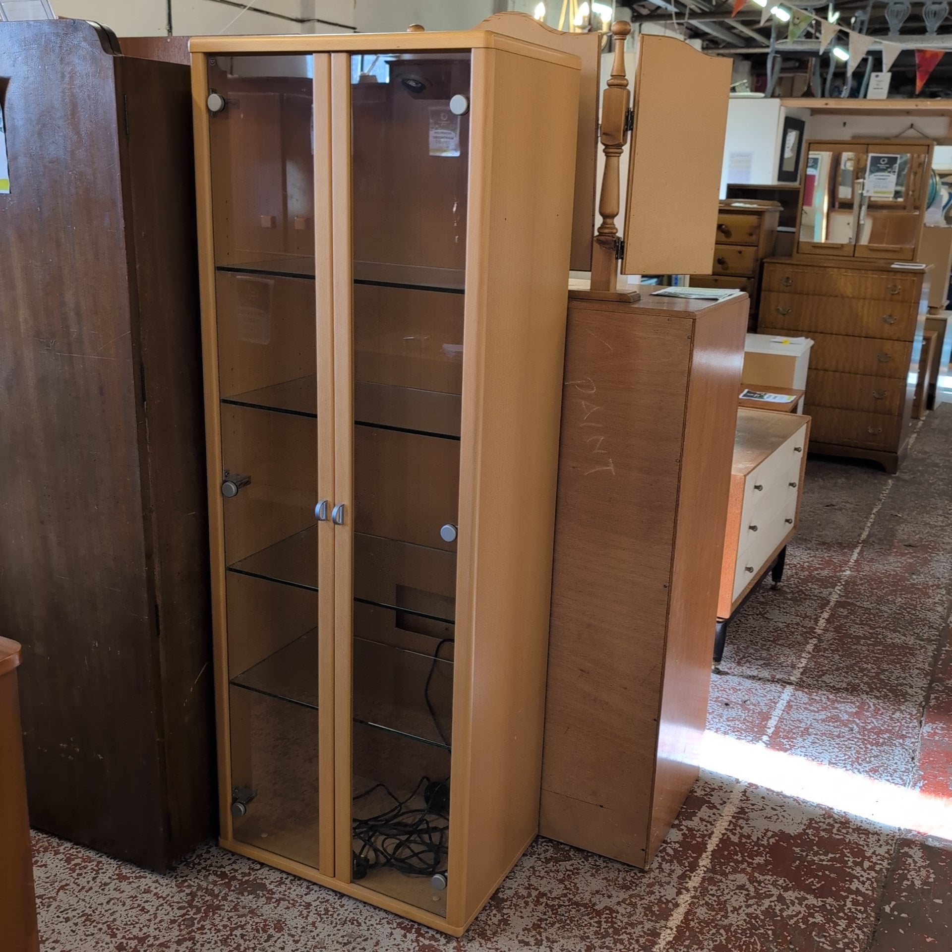Display your treasured collections with pride in this handcrafted wooden frame cabinet. Featuring elegant glass shelves and integrated lighting, it beautifully showcases everything from LEGO sets to fine china and collectables. The warm glow highlights each piece while the sturdy wooden frame adds timeless character to any room. A perfect blend of practical storage and artisanal craftsmanship.