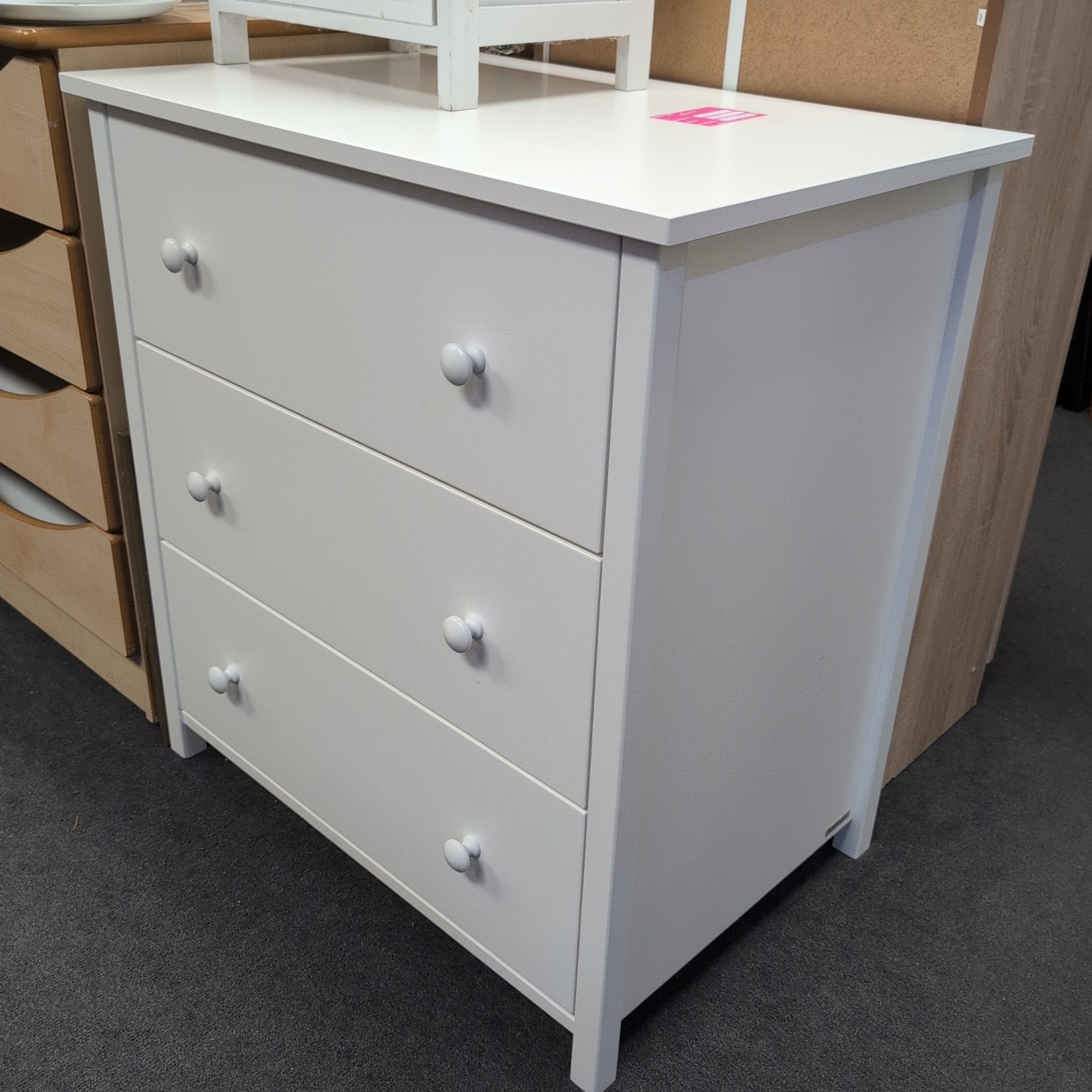 This modern white three drawer chest of drawers offers both style and functionality. With its sleek design and ample storage space, it is the perfect addition to any bedroom or living space. The high-quality construction ensures durability and long-lasting use.