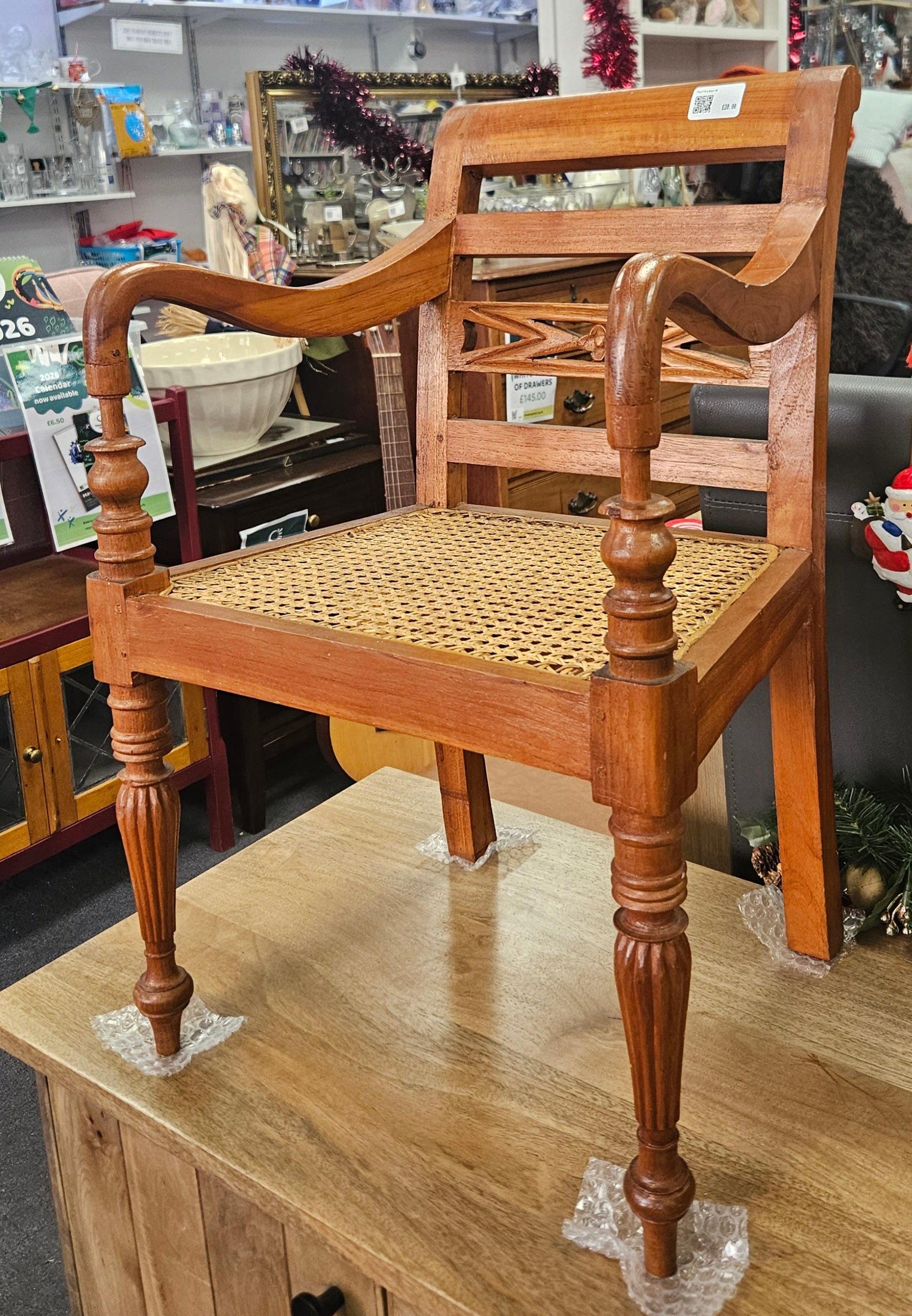 This expertly crafted Child's chair features a sturdy, handmade cane work seat for added durability and comfort. Perfect for young ones to enjoy their own special seating, this chair provides a safe and secure place for them to sit and play. Elevate your child's playtime with this beautifully designed and functional children's chair.