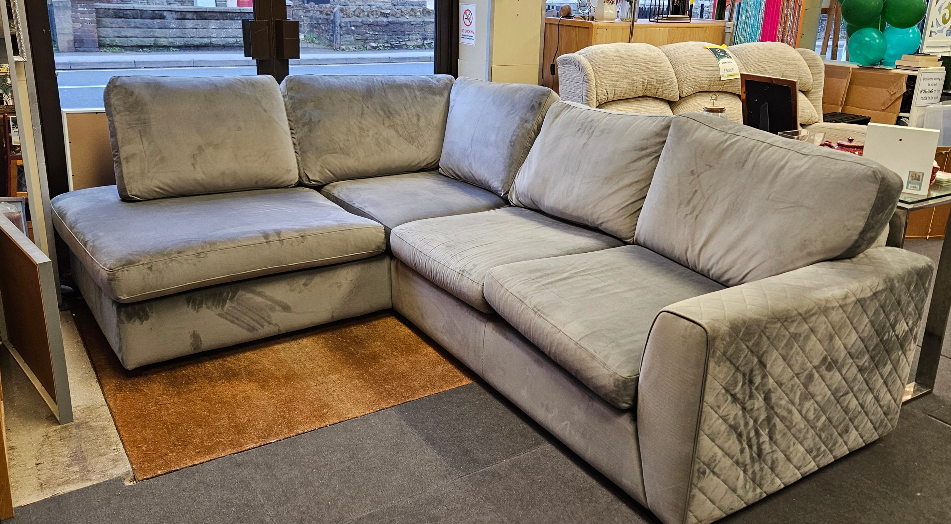 The pale grey corner sofa offers versatile seating that optimizes space efficiency, making it ideal for both small and large living areas. Its neutral colour complements various decor styles and enhances room brightness, while offering practical comfort for extended use.
