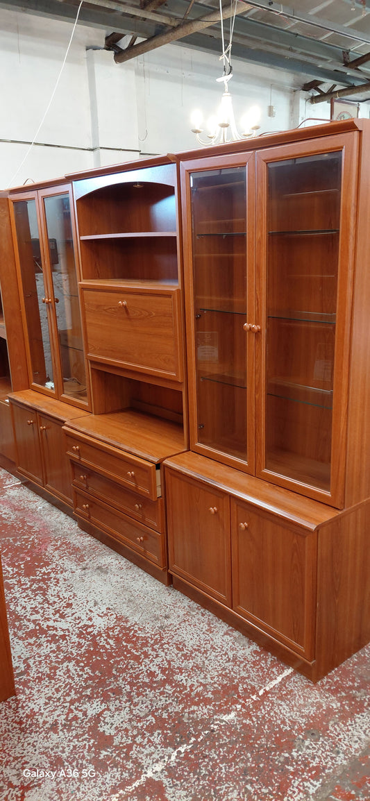 This modern display unit features glass doors for enhanced visibility, two drawers for organized storage, and adjustable shelves to accommodate various item sizes. Its design promotes efficient space utilization while maintaining an aesthetic appeal, making it a practical choice for both residential and commercial environments.