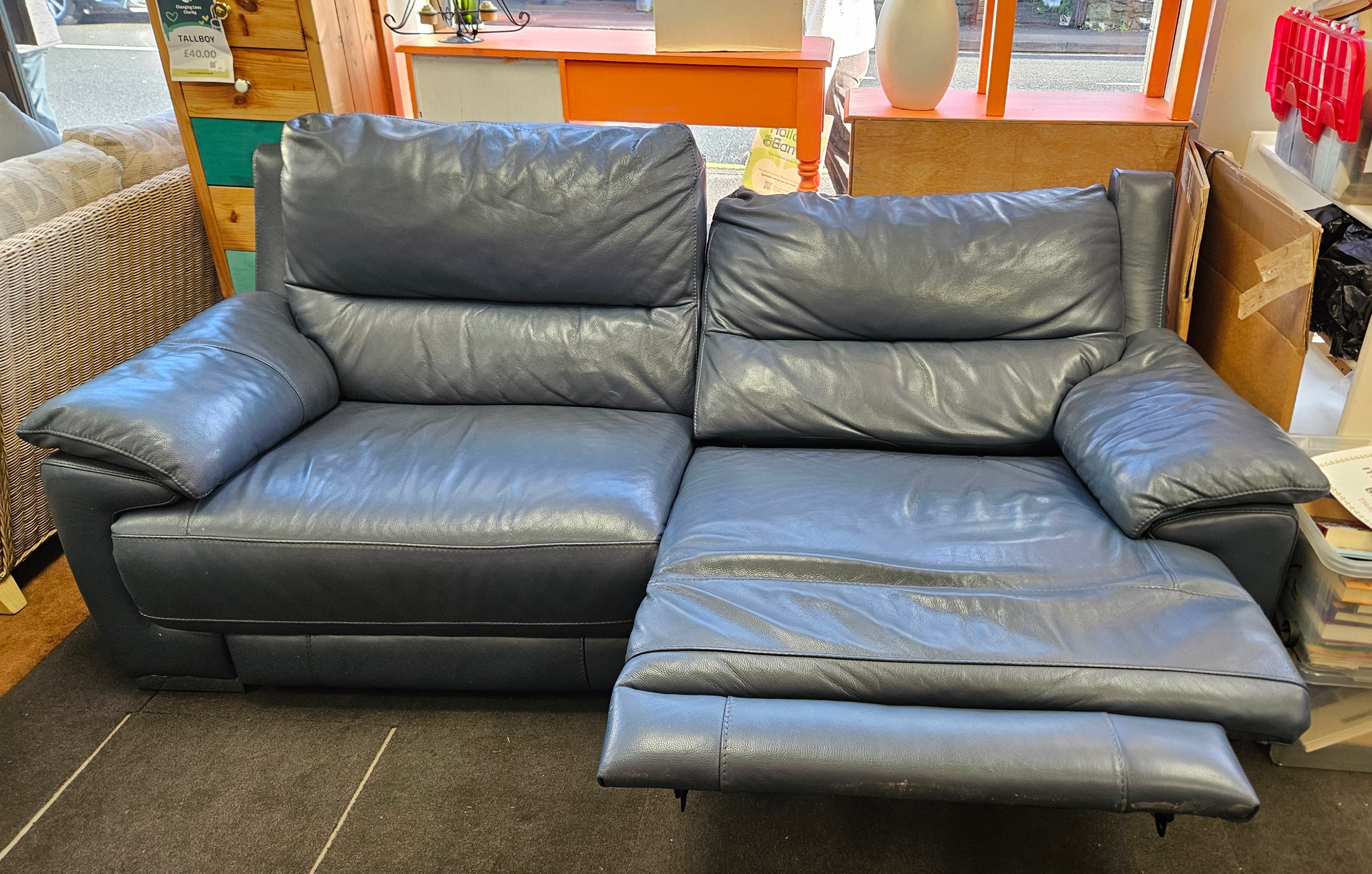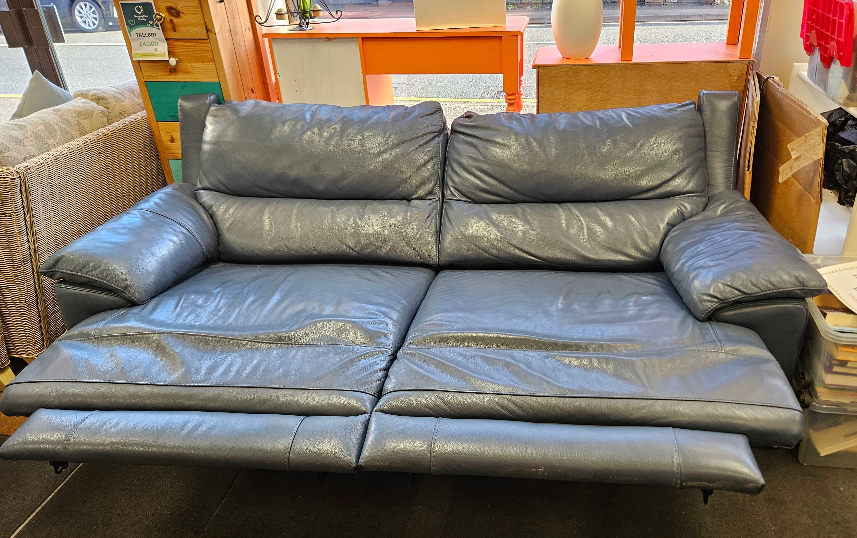 The electric reclining sofa in steel blue offers integrated USB ports for convenient device charging. Its ergonomic design promotes relaxation, enhancing user comfort during extended use. The steel blue upholstery adds a modern aesthetic, making it suitable for various interior styles while ensuring durability and ease of maintenance.