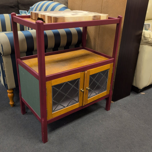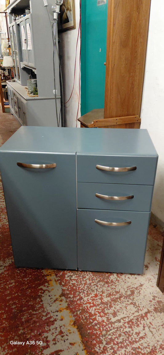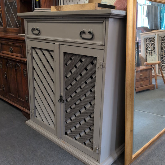 This classic cabinet, crafted by the inmates of HMP Bristol, combines functionality with thoughtful design. Featuring two full-length drawers and a cupboard, it offers ample storage space. The frame is finished in Summer Sky from the Autentico paint range, while the drawer and door fronts are treated with a rich dark brown varnish, creating a striking contrast. This piece not only provides practical storage but also supports a meaningful cause through its unique origin.