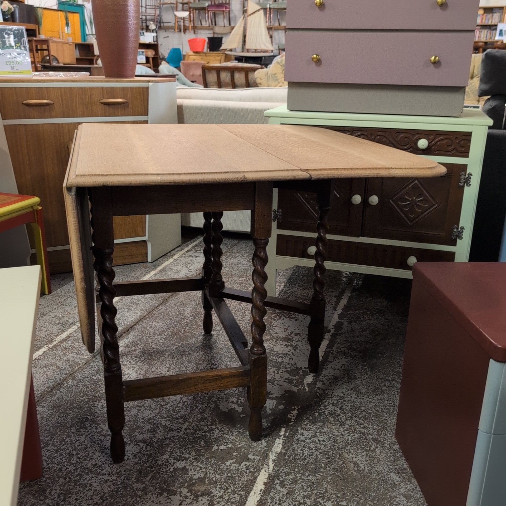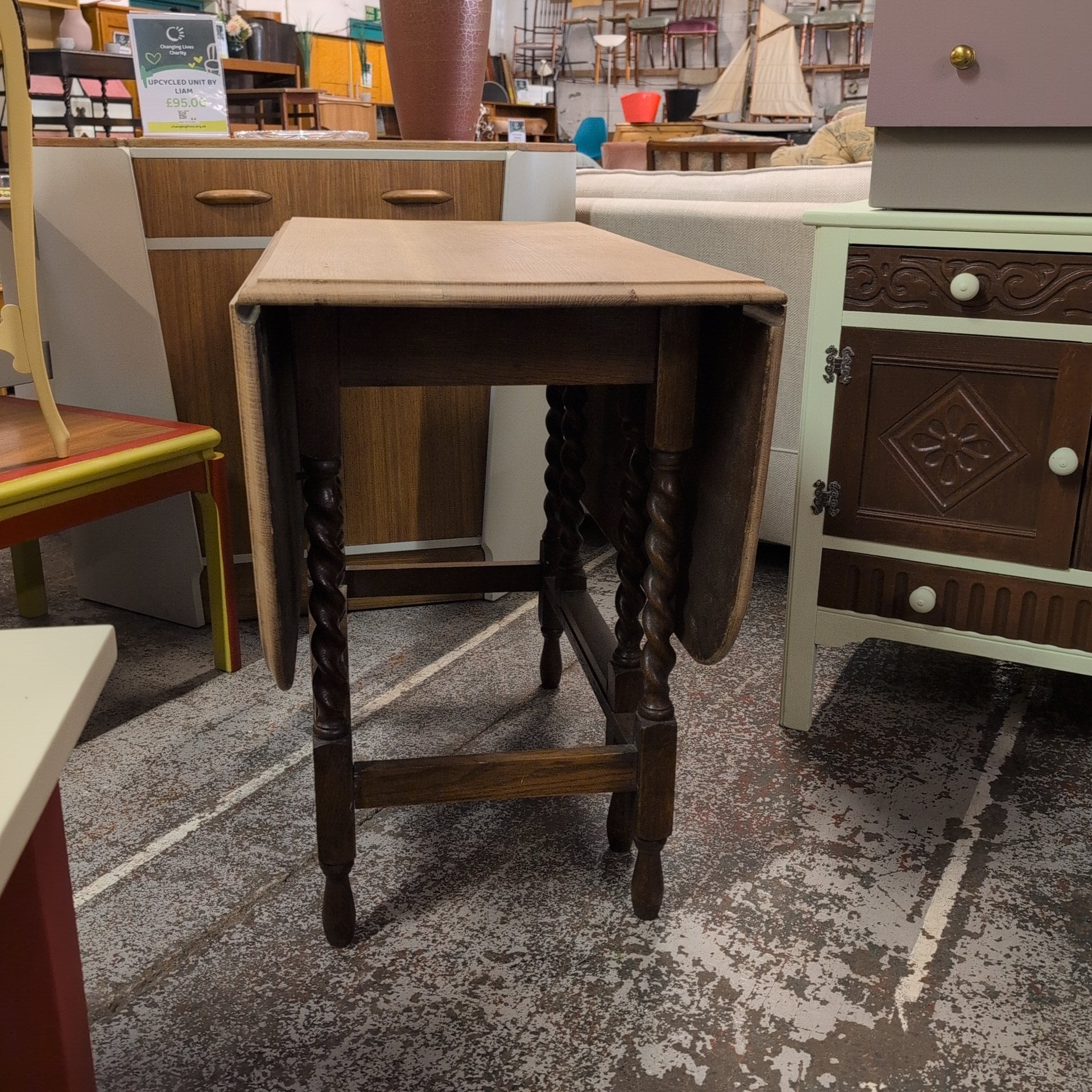 This beautifully crafted drop-leaf table showcases the exceptional skill and dedication of artisans at HMP Bristol. The tabletop reveals the natural grain and warmth of the wood through careful hand-sanding, while the varnished legs provide a striking visual contrast. Its versatile design adapts to your space—expand it for dining and entertaining, or keep it compact for everyday living. A truly meaningful piece that combines functional elegance with the pride of skilled craftsmanship.