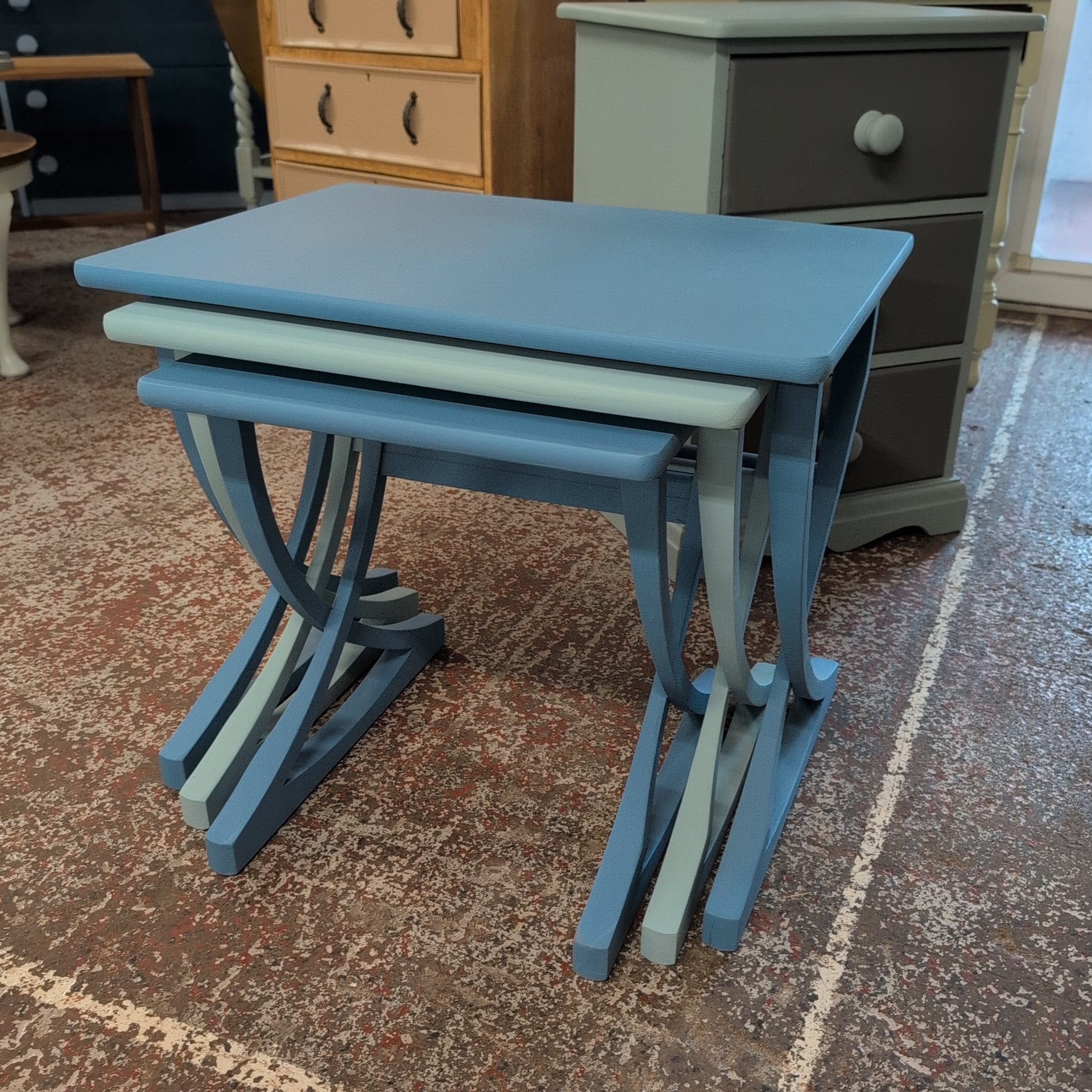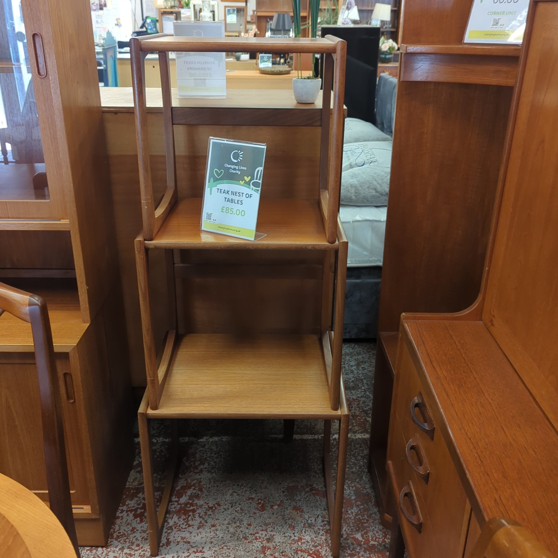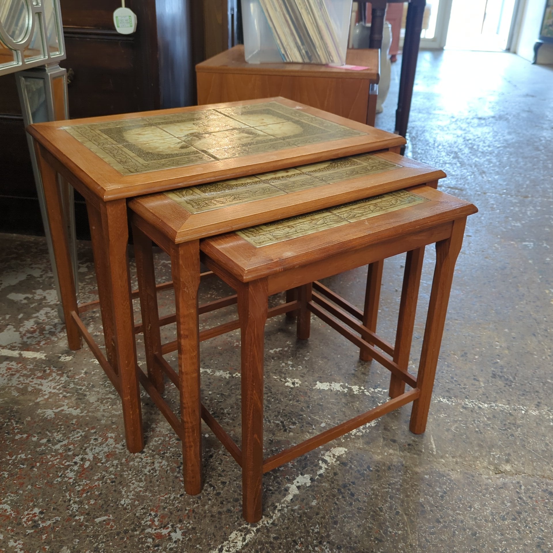 Discover the charm of a Mid-Century Danish nesting table set, reminiscent of Poul Hundevad's timeless design or meticulously crafted replicas. The main table features smooth-rolling wheels for effortless mobility, while four folding circular tables nest neatly underneath, providing versatile space-saving solutions. Ideal for stylish living areas, this set combines elegant craftsmanship with practical functionality to enhance any room.