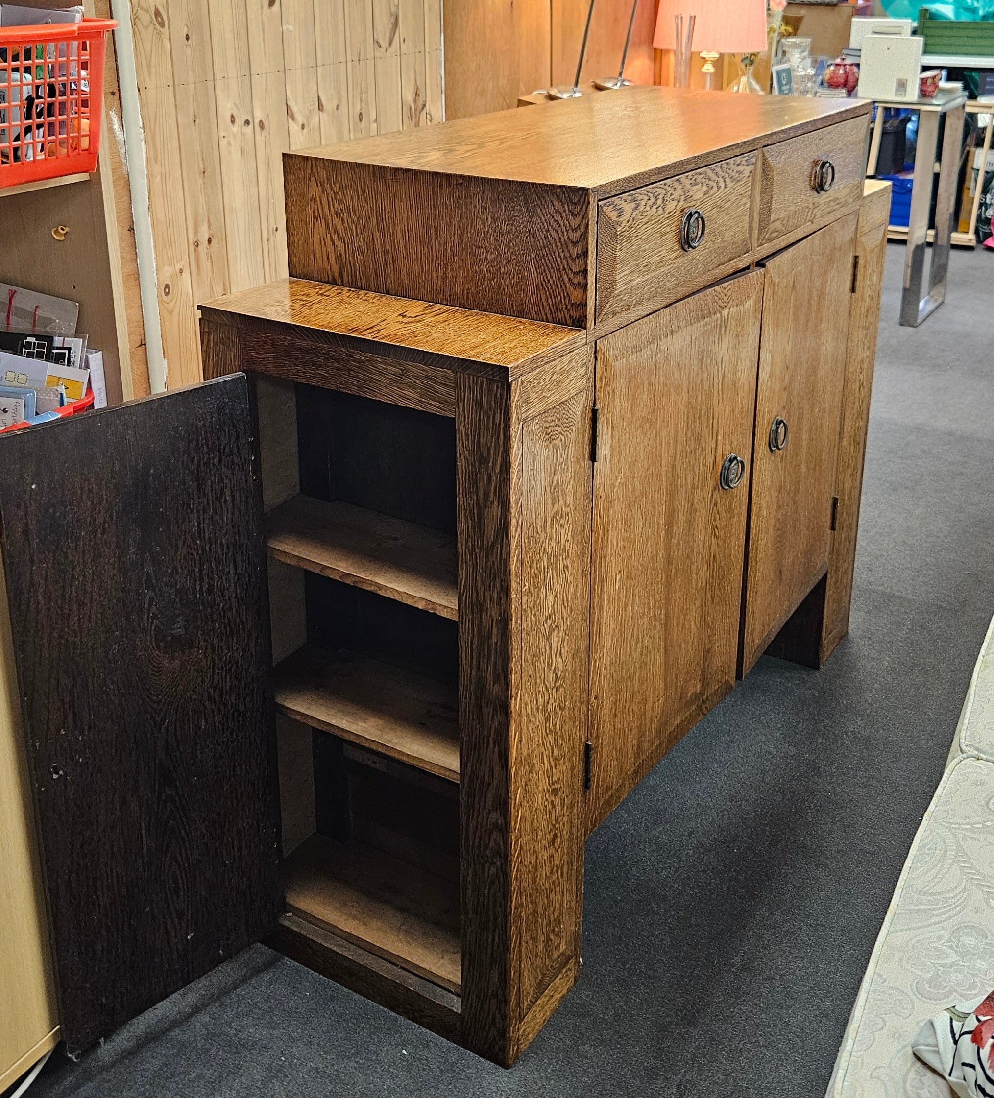 This late 1930s sideboard combines historical craftsmanship with functional design, featuring concealed side. This configuration offers 100% efficient use of space, providing ample storage while maintaining a clean, elegant aesthetic ideal for enhancing any interior décor.