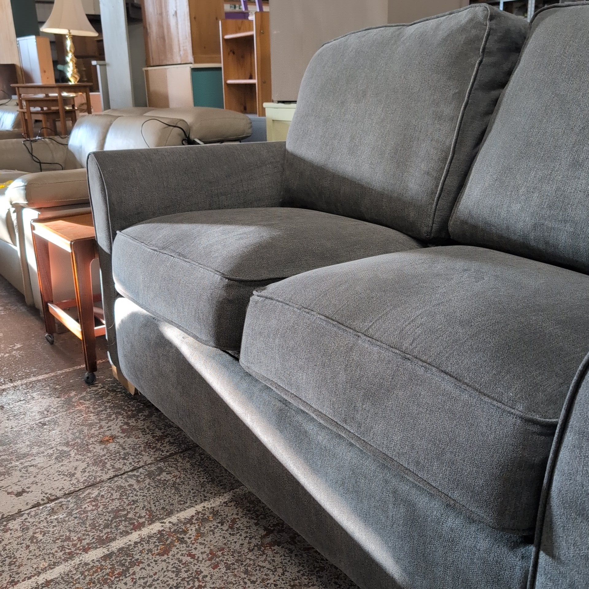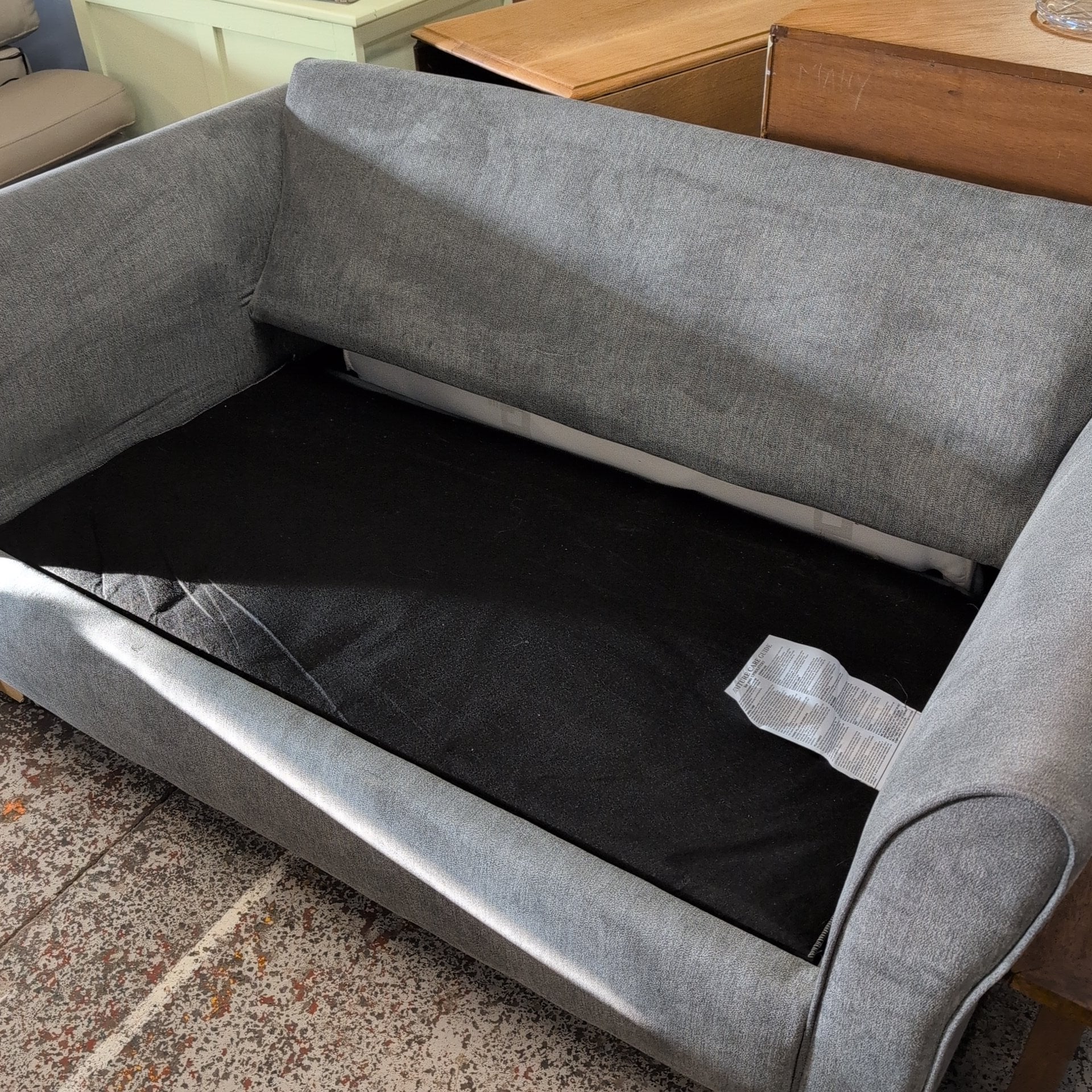 This versatile two-seater sofa bed combines contemporary comfort with practical functionality. Upholstered in a sophisticated blue-grey fabric, it serves as an elegant seating solution by day and transforms into a comfortable sleeping surface by night. The bed mechanism folds smoothly from the frame, making it ideal for guest rooms, studios, or compact living spaces where dual-purpose furniture maximises utility without compromising on style. Perfect for those seeking quality craftsmanship with intelligent design.