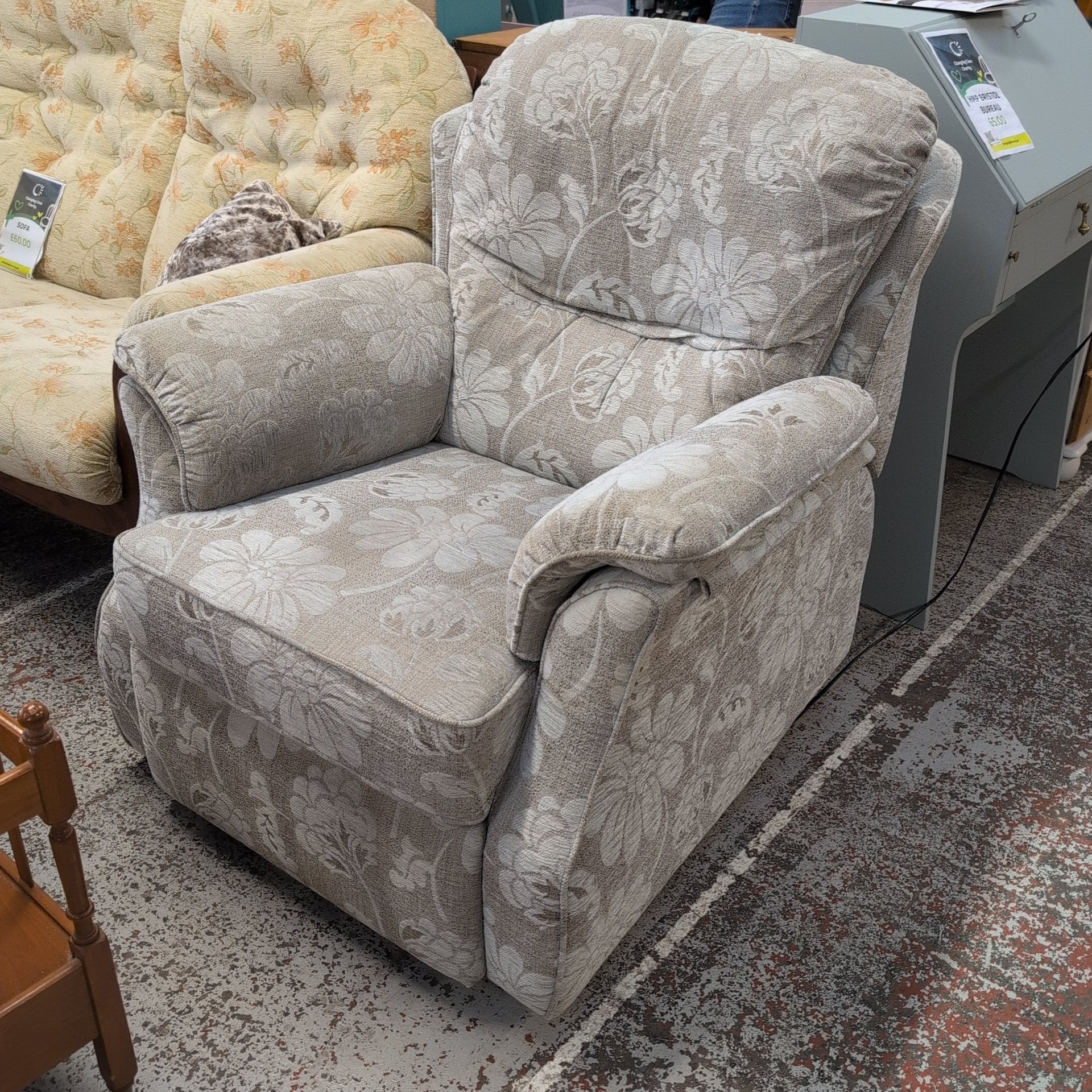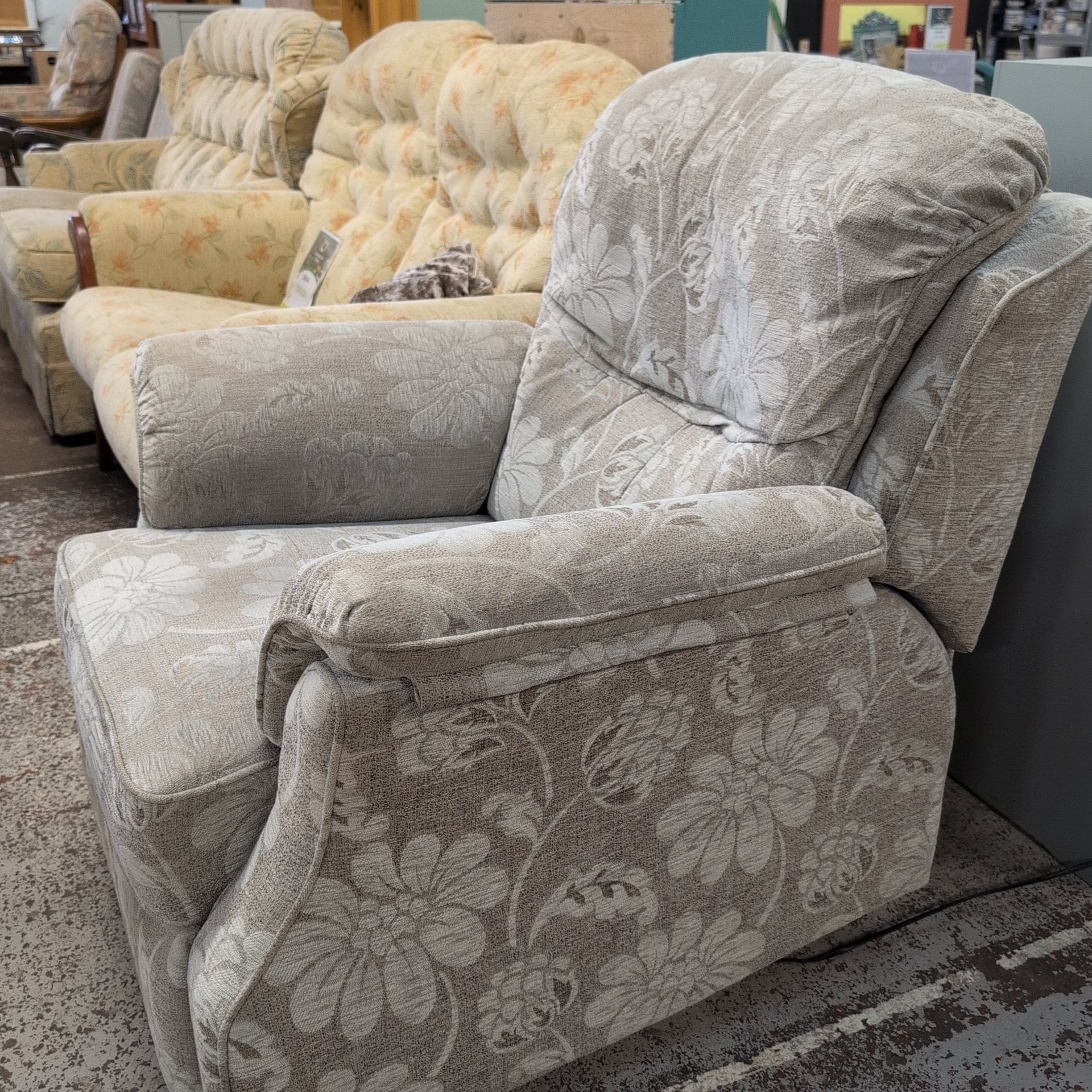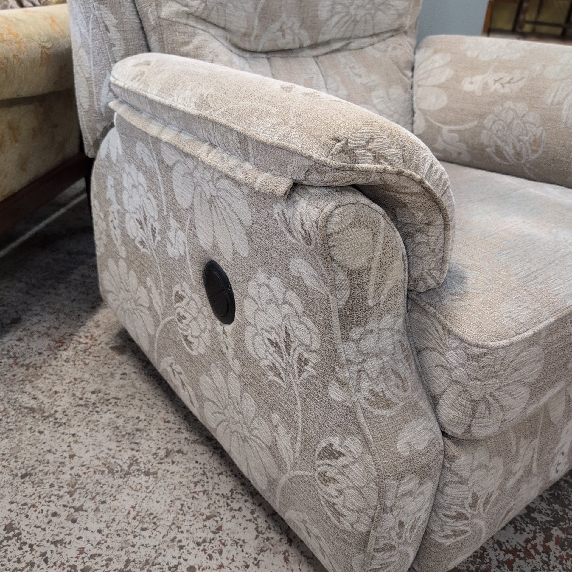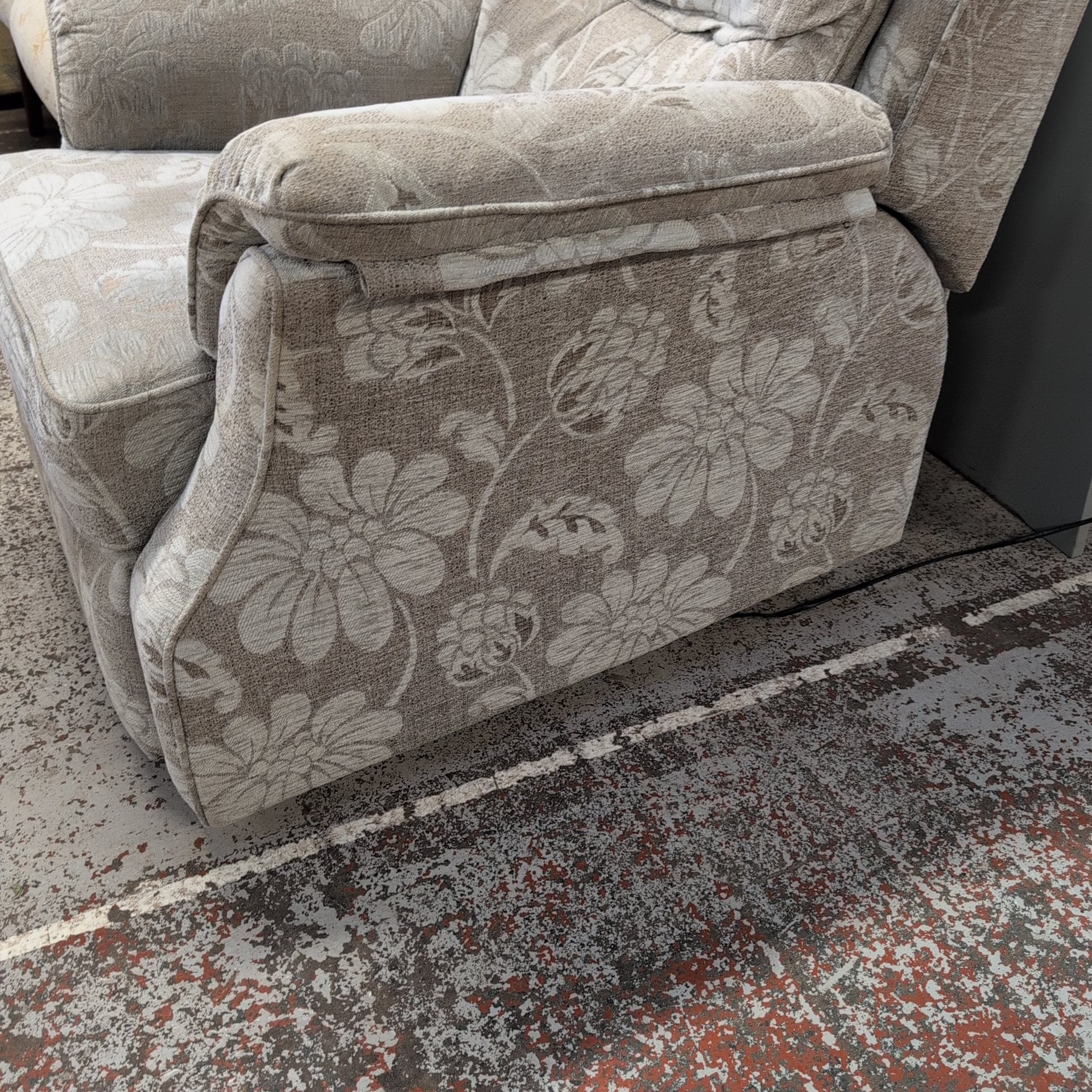This elegant G-Plan suite combines timeless design with modern comfort. The grey floral print three-seater sofa provides generous seating, while the matching electric reclining chair offers adjustable support at the touch of a button. Fully functional and PAT tested for safety, the chair delivers reliable performance. Perfect for those seeking coordinated, quality furniture that balances style with practical relaxation features.