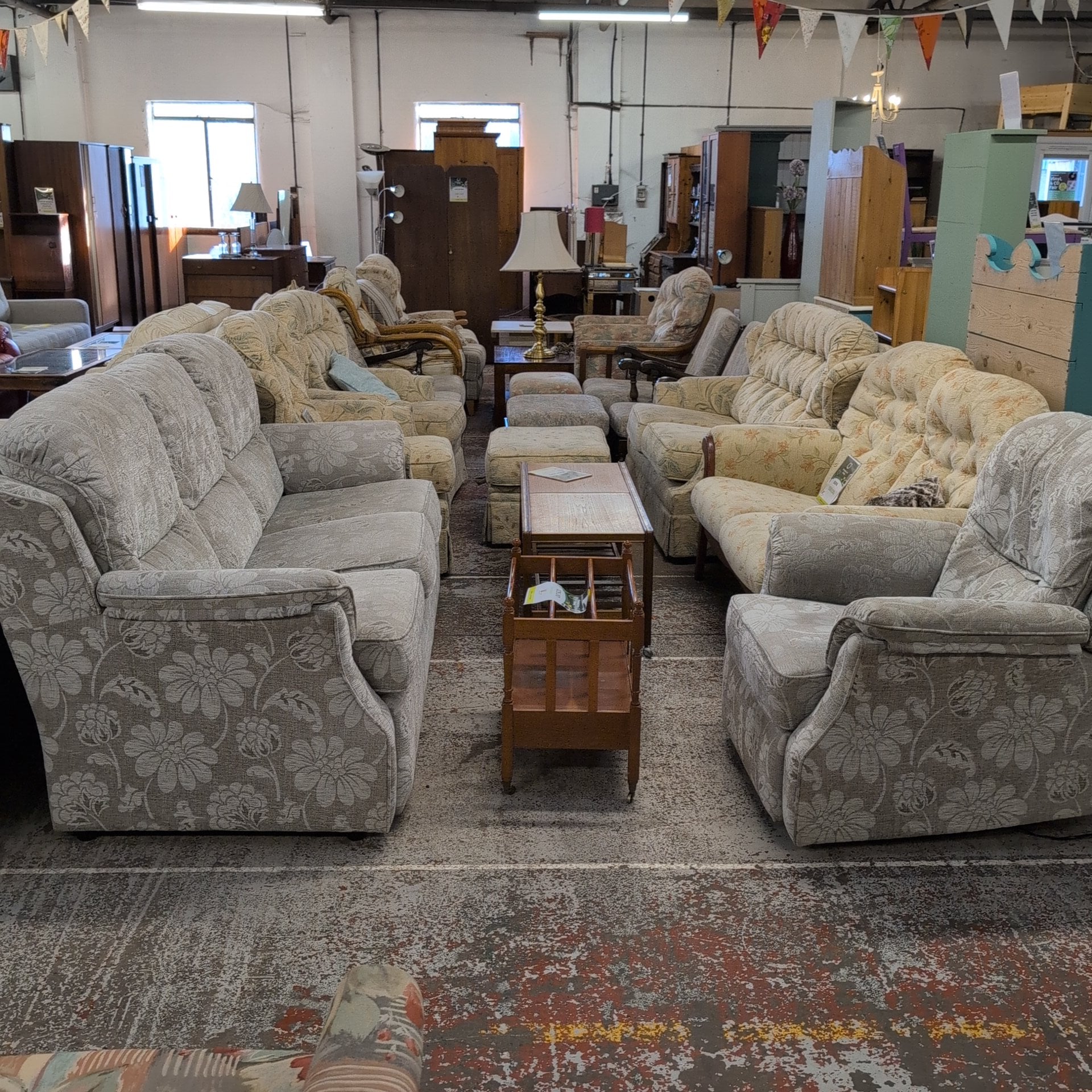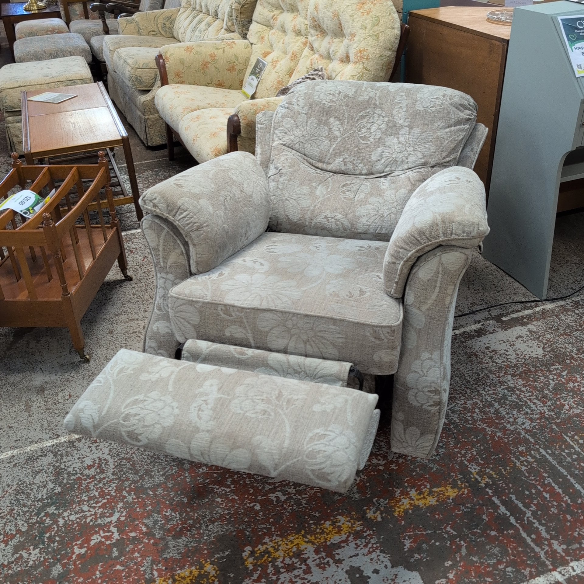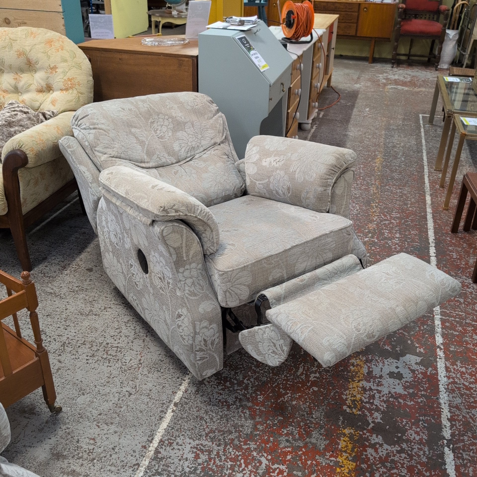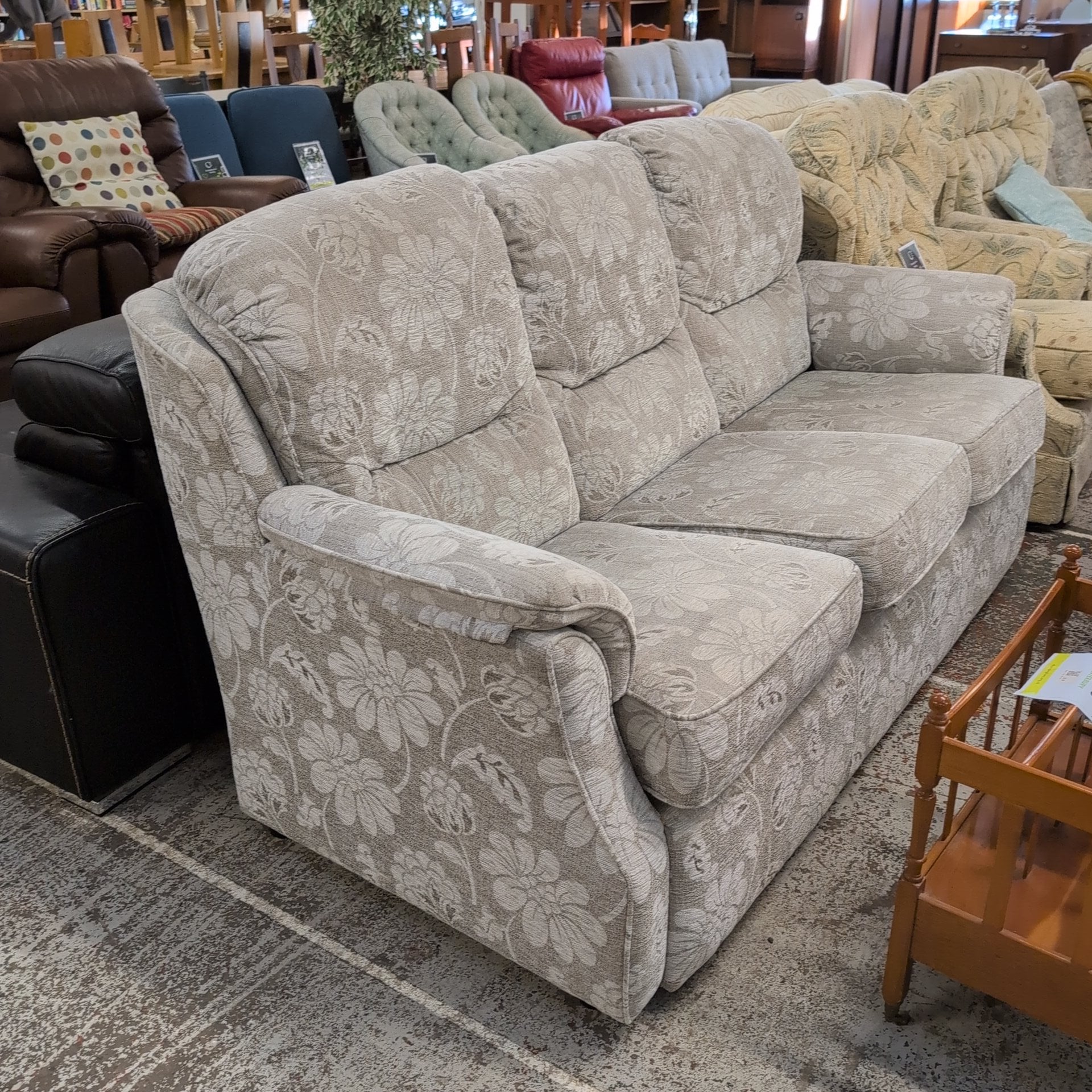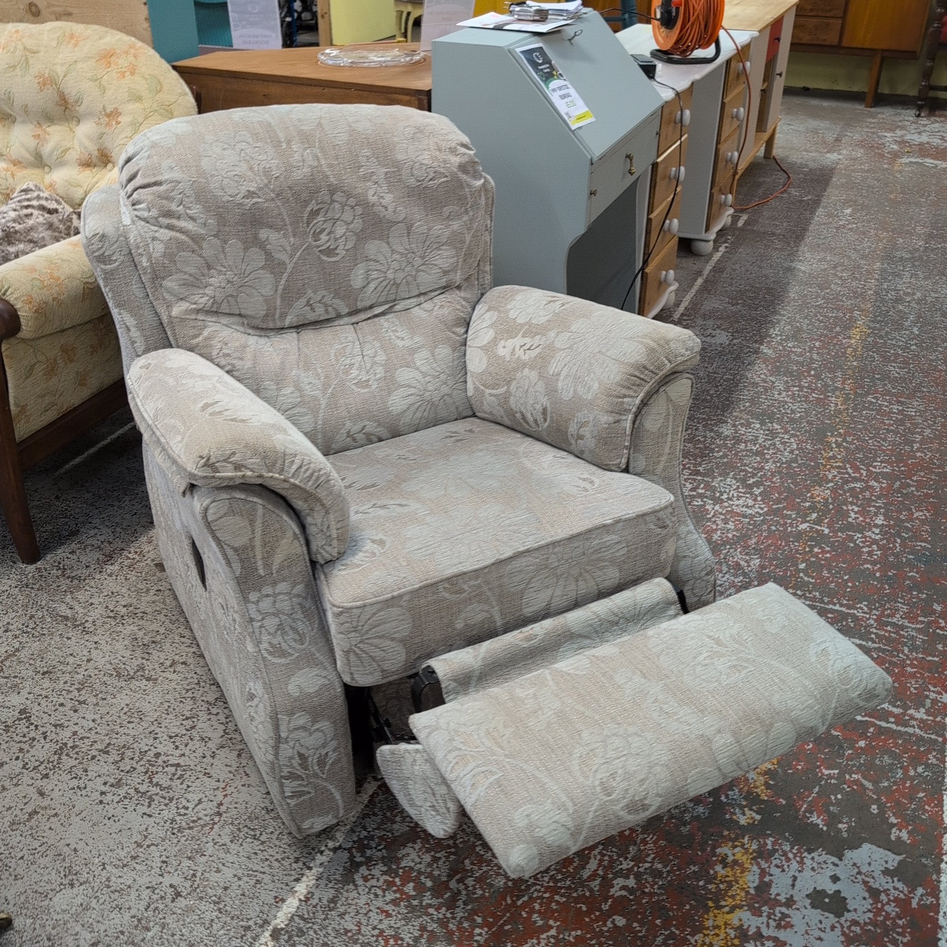 This elegant G-Plan suite combines timeless design with modern comfort. The grey floral print three-seater sofa provides generous seating, while the matching electric reclining chair offers adjustable support at the touch of a button. Fully functional and PAT tested for safety, the chair delivers reliable performance. Perfect for those seeking coordinated, quality furniture that balances style with practical relaxation features.