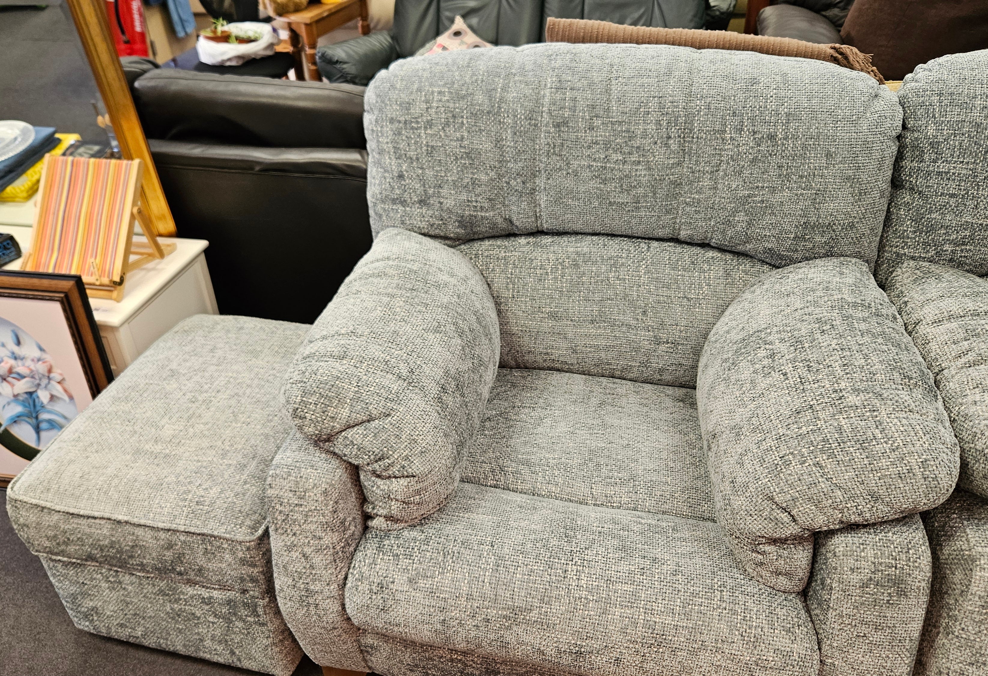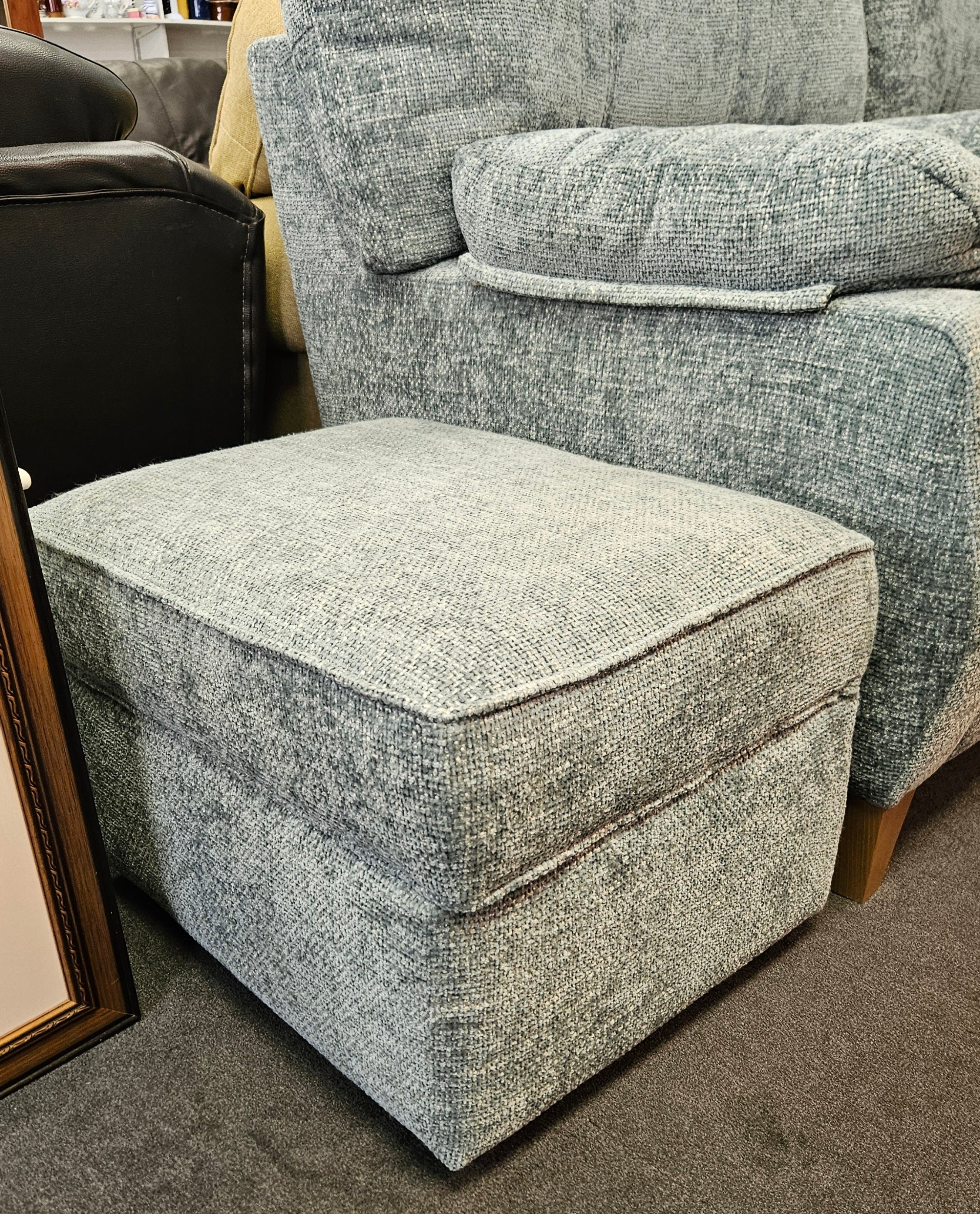 The Suite features a duck egg blue colour scheme, consisting of a large two-seat sofa, an armchair, and a multifunctional footstool with integrated storage. The arrangement offers comfortable seating for up to three individuals, while the footstool enhances functionality and maximizes space efficiency in your living area.