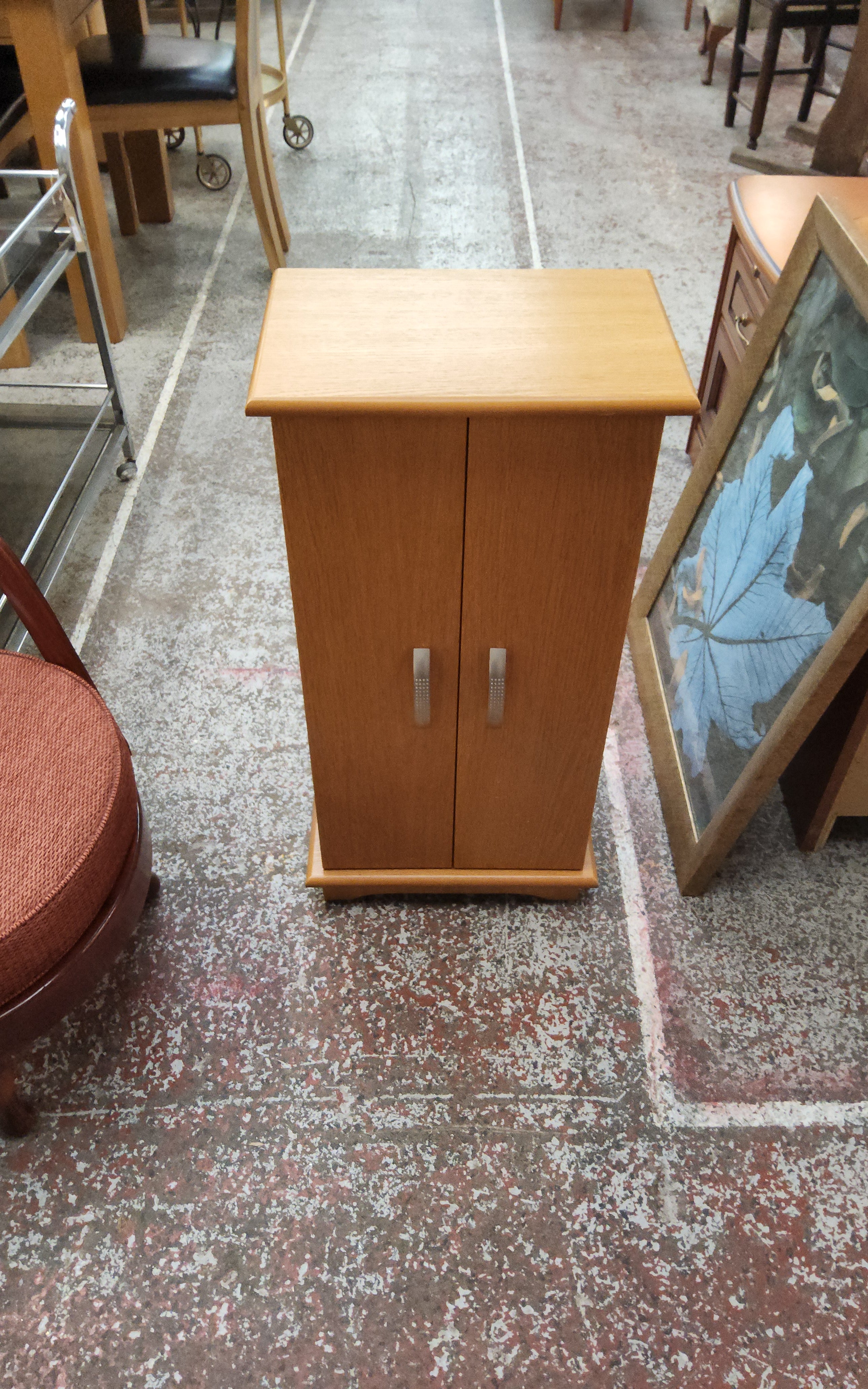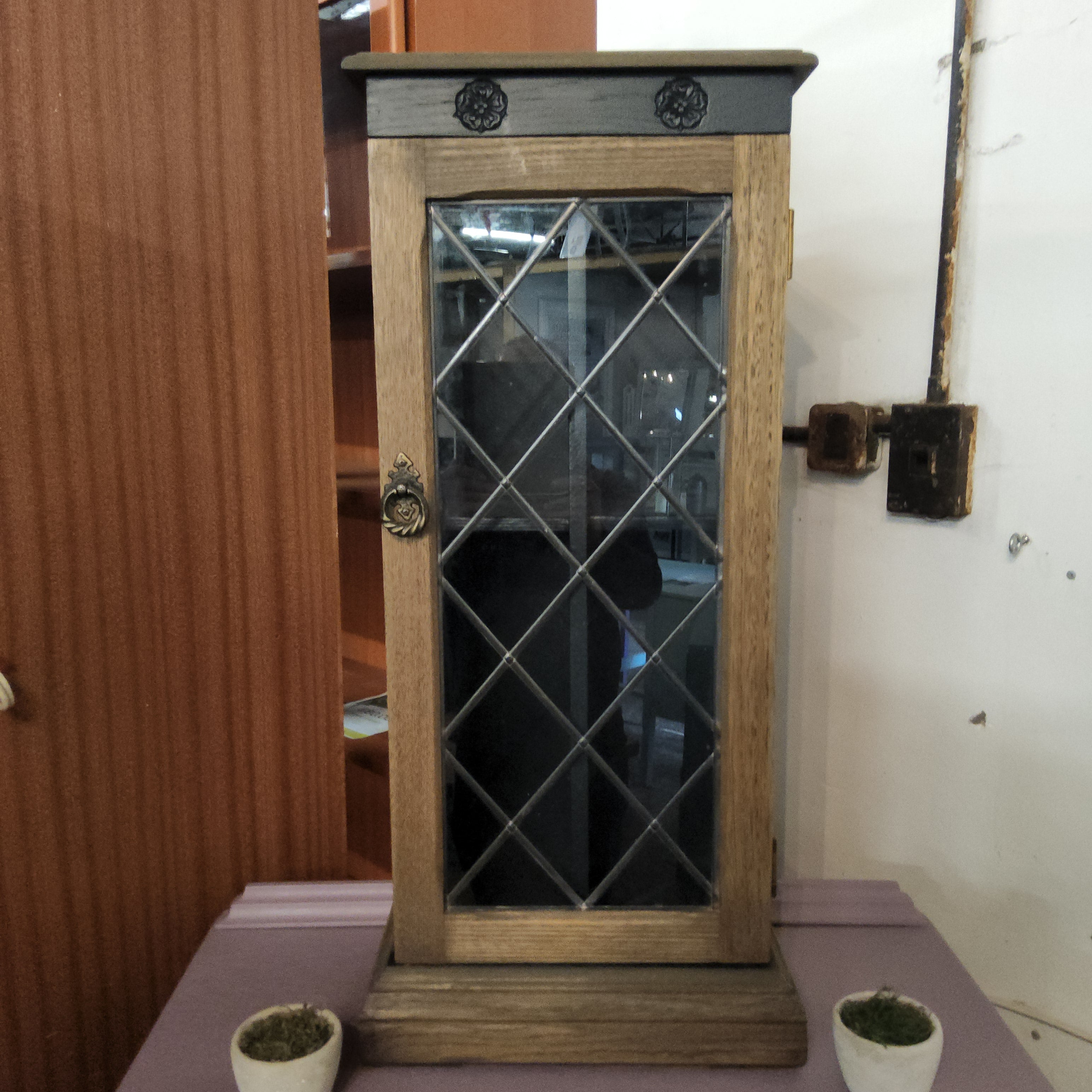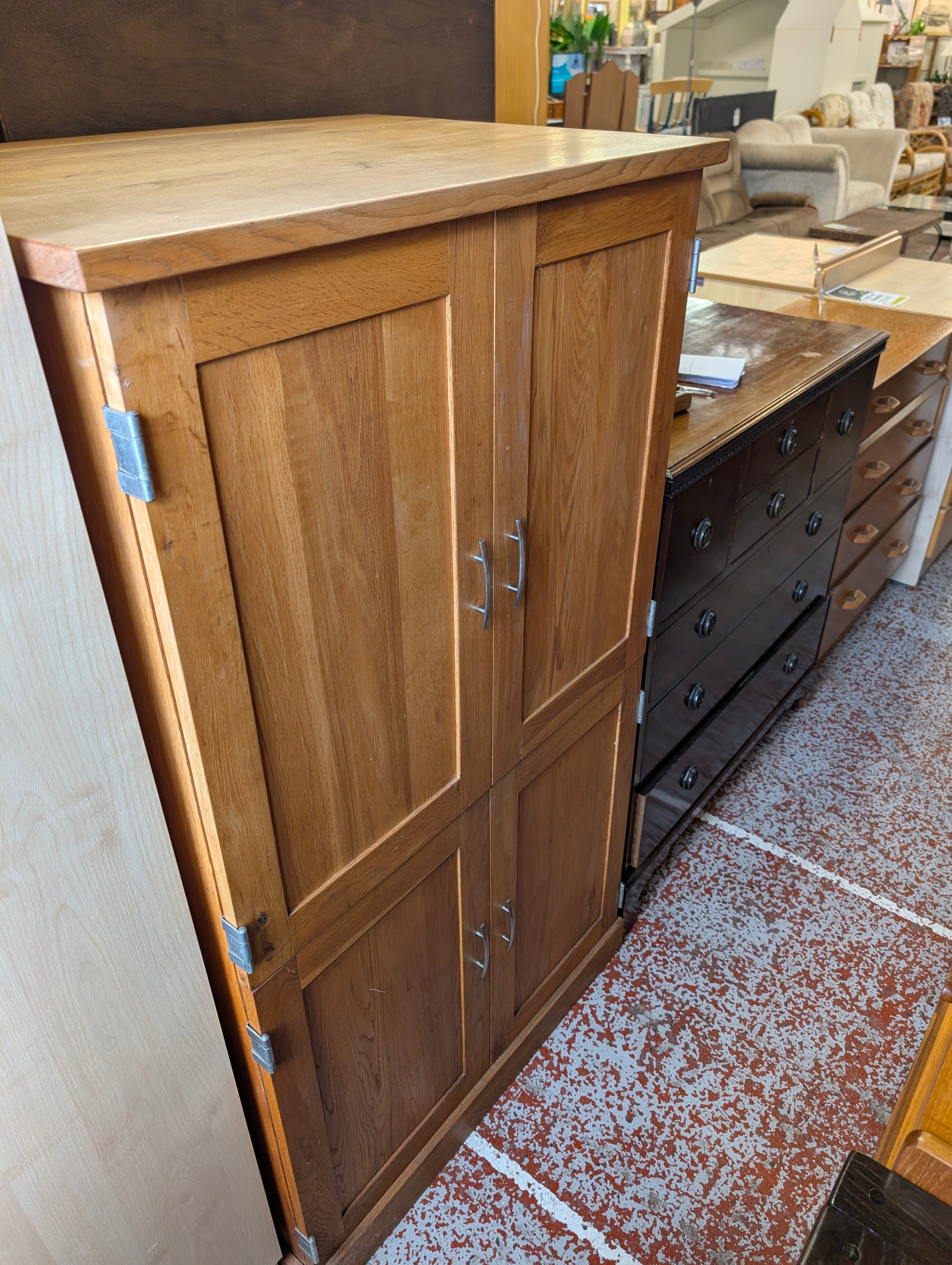 Liam, our pioneering volunteer in upcycling, has crafted this elegant drop-down cabinet showcasing his five years of growing expertise. Featuring a sophisticated blend of two grey tones from the Autentico paint range, the cabinet is beautifully complemented by a polished wooden top. This piece combines skilled craftsmanship with timeless design, making it a standout addition to any space.