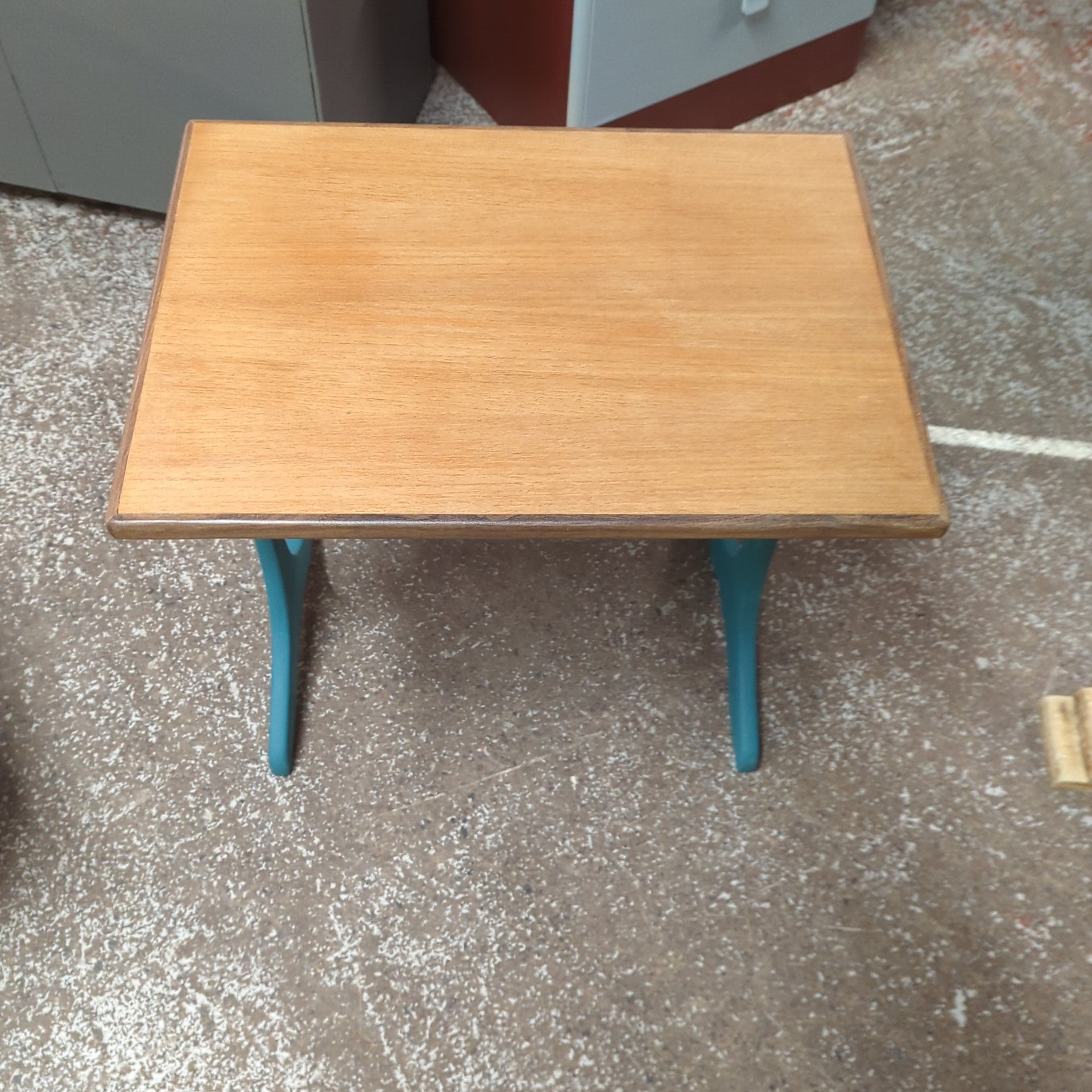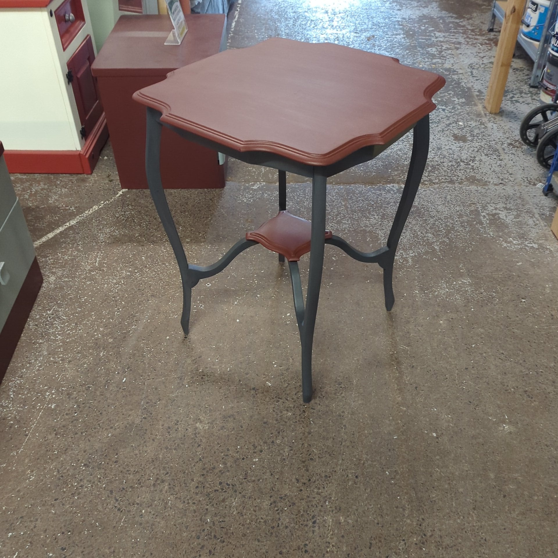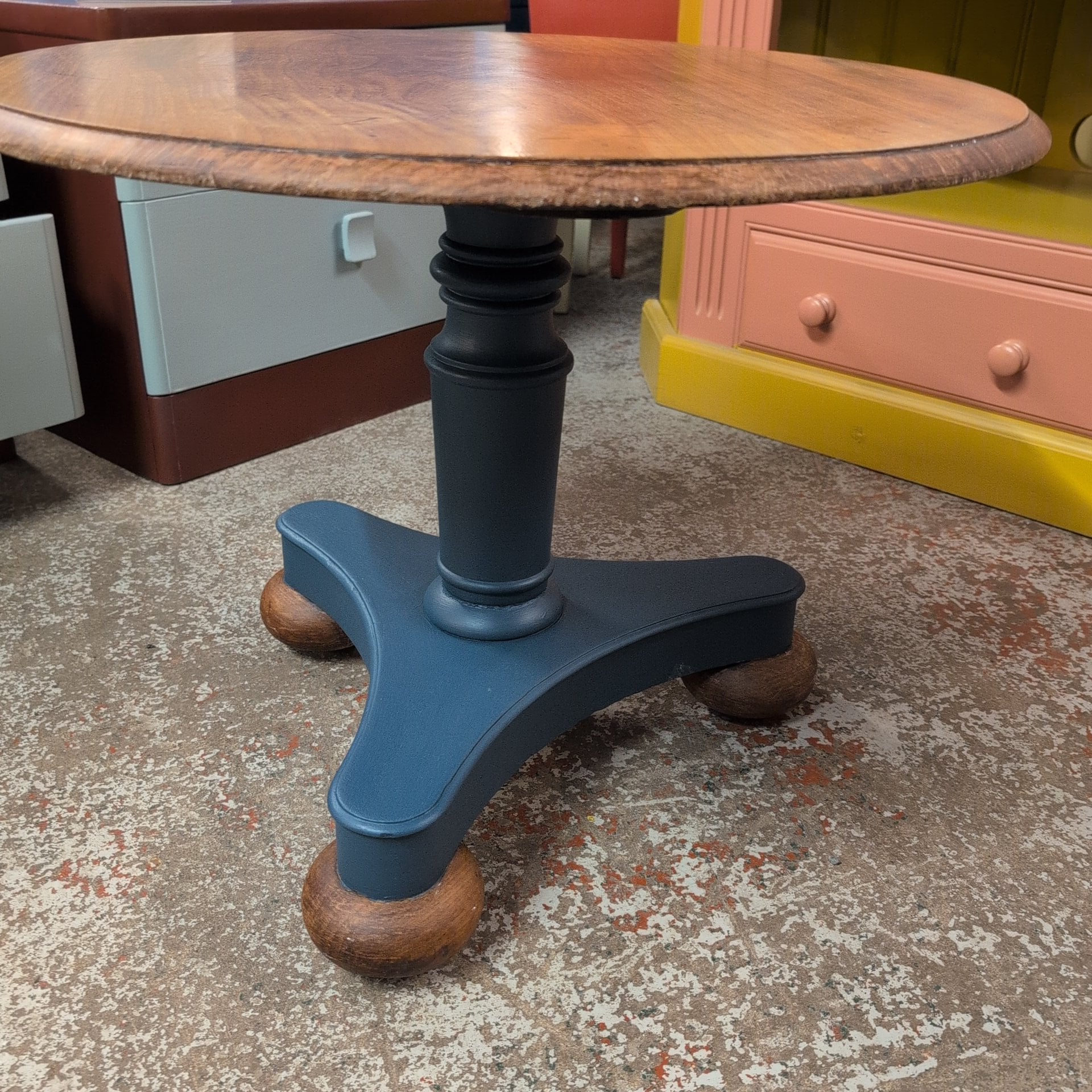 Discover the charm of sustainable design with this expertly upcycled round table, finished in sophisticated Dutch Blue from the Autentico paint range. Mobility meets functionality with smooth-rolling wheels, making it ideal for flexible living spaces. The tabletop has been meticulously sanded to a silky finish, combining tactile quality with refined aesthetics. A practical yet elegant addition to any room, this piece demonstrates how thoughtful restoration elevates both style and purpose.