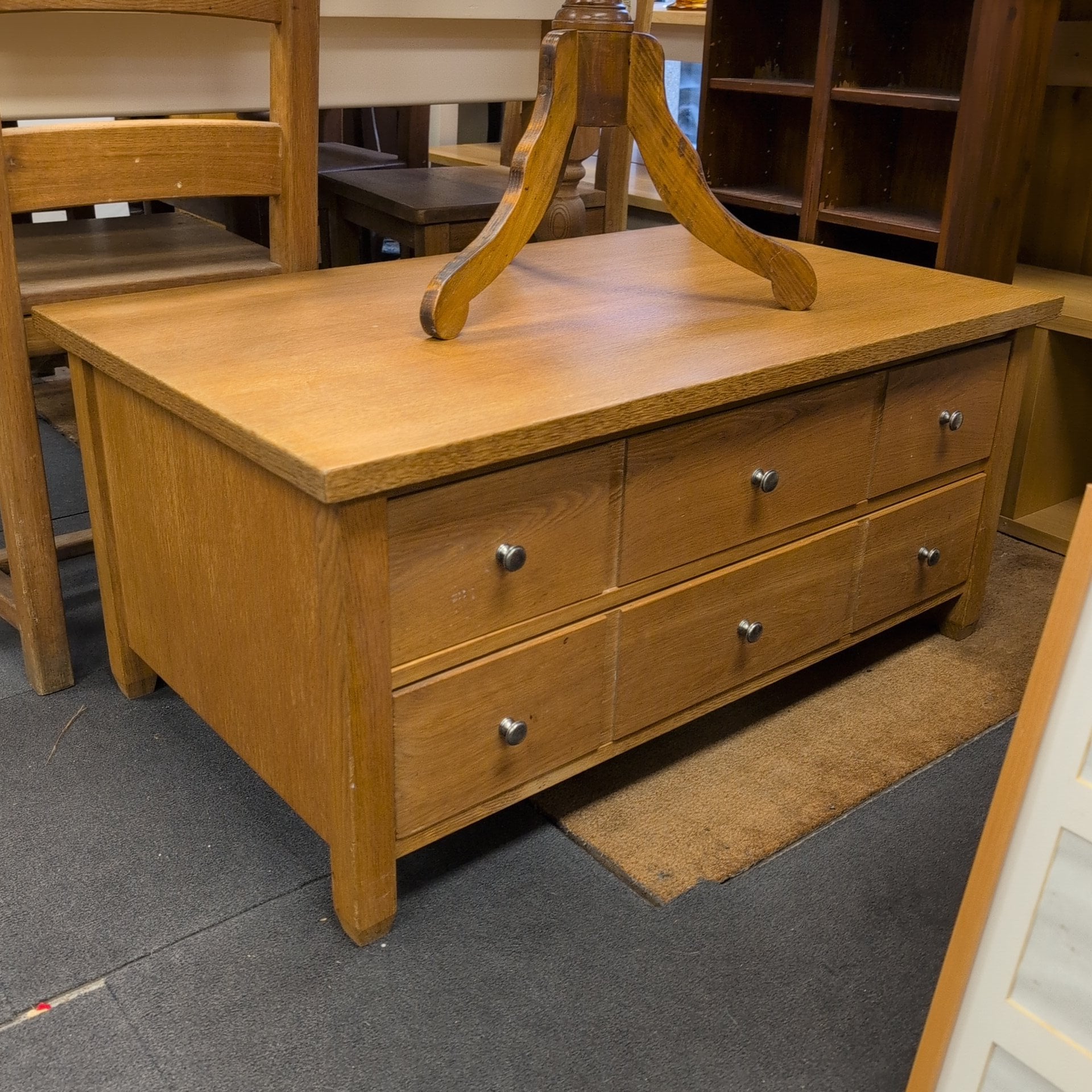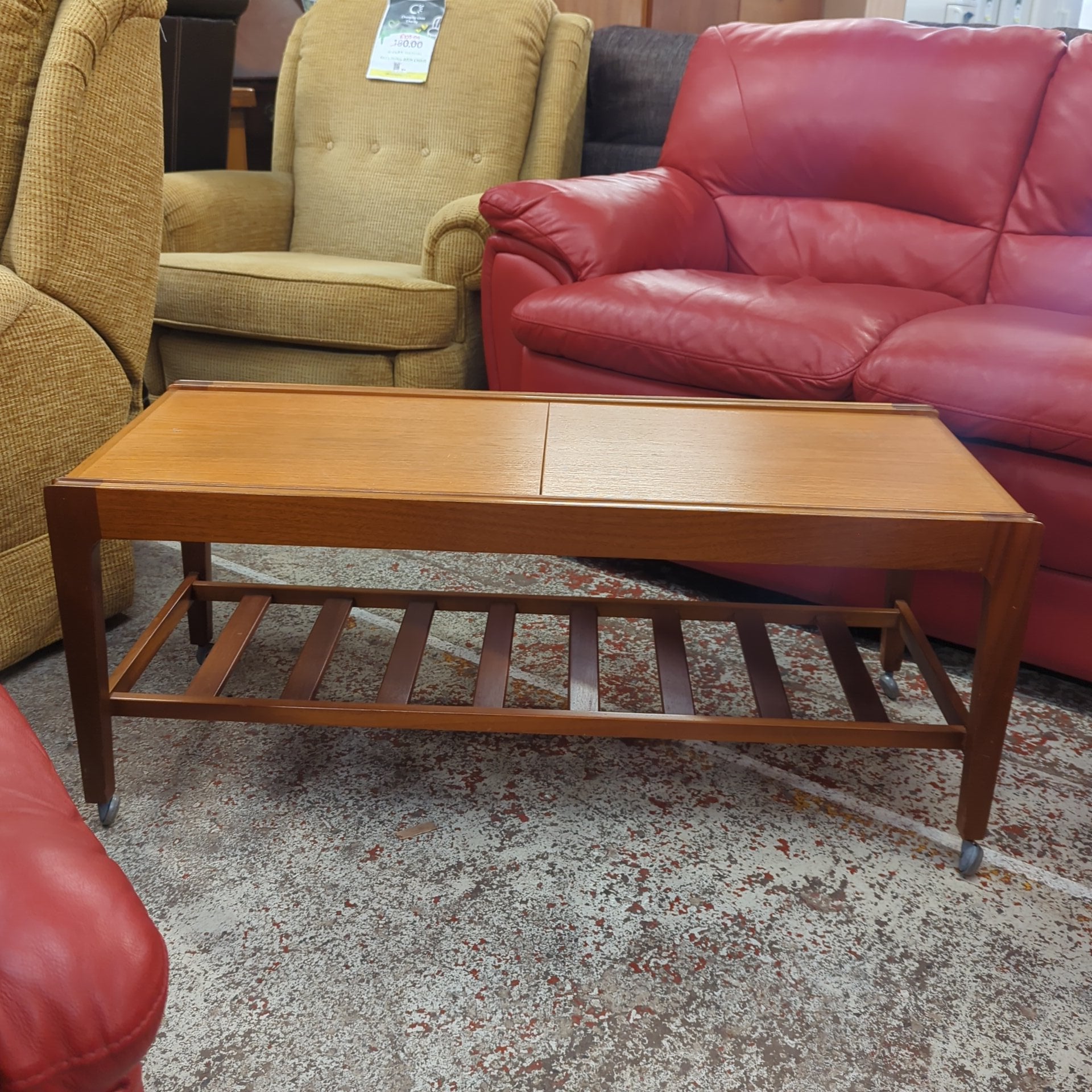 This upcycled wooden coffee table, thoughtfully restored by our volunteer James, features a striking combination of bright red and yellow hues. The bold colours create a vibrant focal point that enlivens any room while showcasing sustainable craftsmanship. Perfect for those who appreciate unique, eco-friendly furniture with character and style.